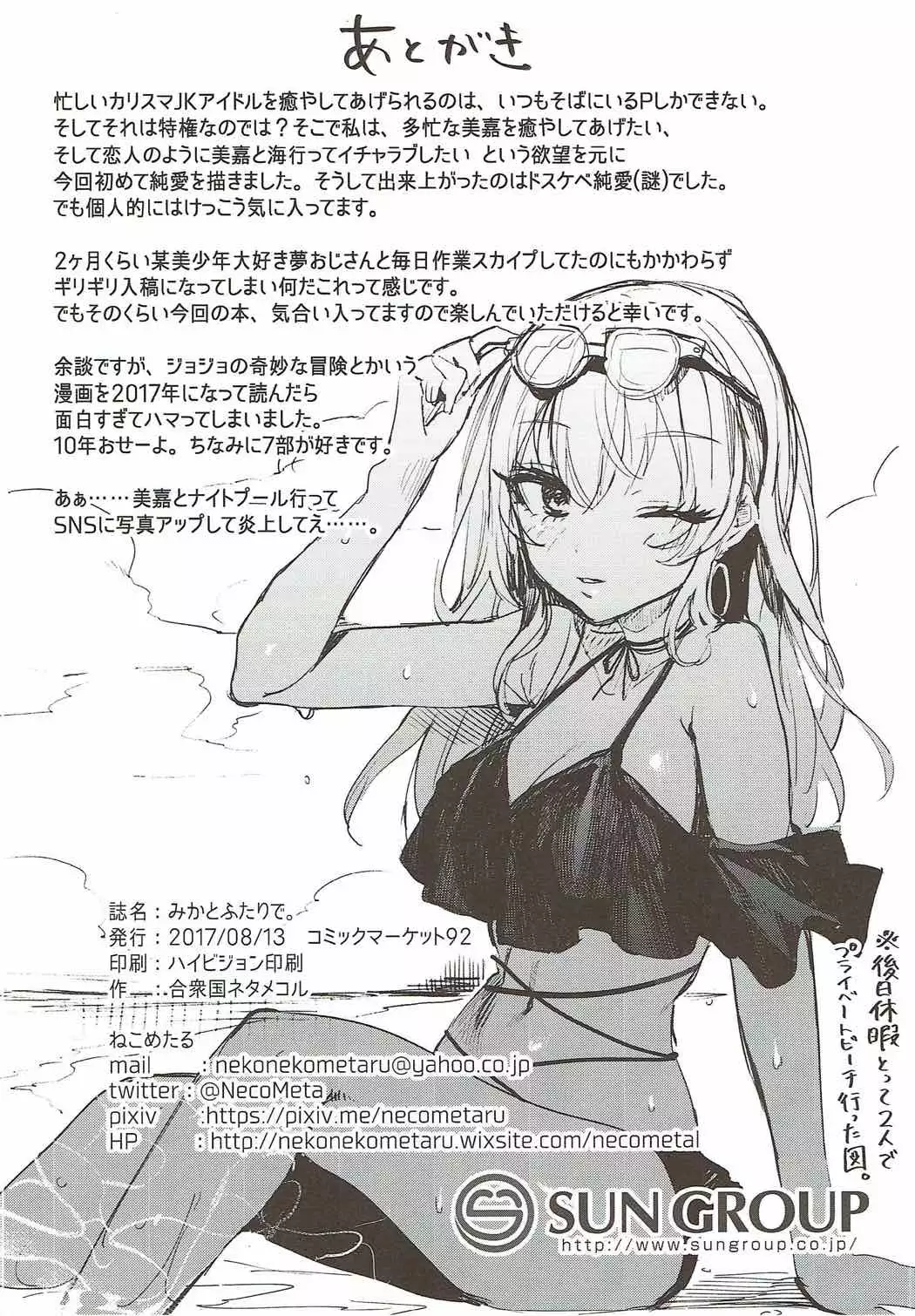 (C92) [Gasshuukoku Netamekoru (Nekometaru)] Mika to Futari de. (THE IDOLM@STER CINDERELLA GIRLS) (C92) [合衆国ネタメコル (ねこめたる)] みかとふたりで。 (アイドルマスター シンデレラガールズ)
