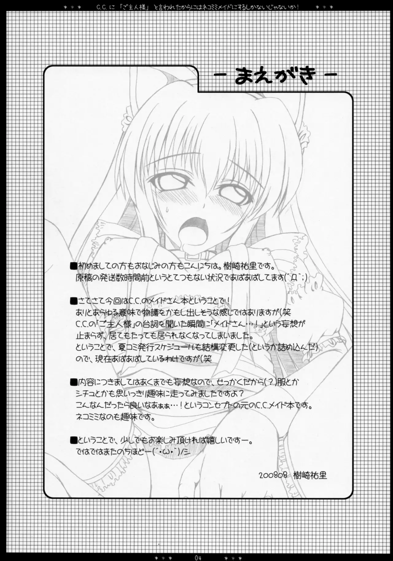 (C74) [HAPPY WATER (Kizaki Yuuri)] C.C. ni "Goshujin-sama" to Iwareta Karani wa Nekomimi Maid ni Suru Shikanai Janai ka! (Code Geass: Lelouch of the Rebellion) (C74) [HAPPY WATER (樹崎祐里)] C.C.に「ご主人様」と言われたからにはネコミミメイドにするしかないじゃないか! (コードギアス 反逆のルルーシュ)