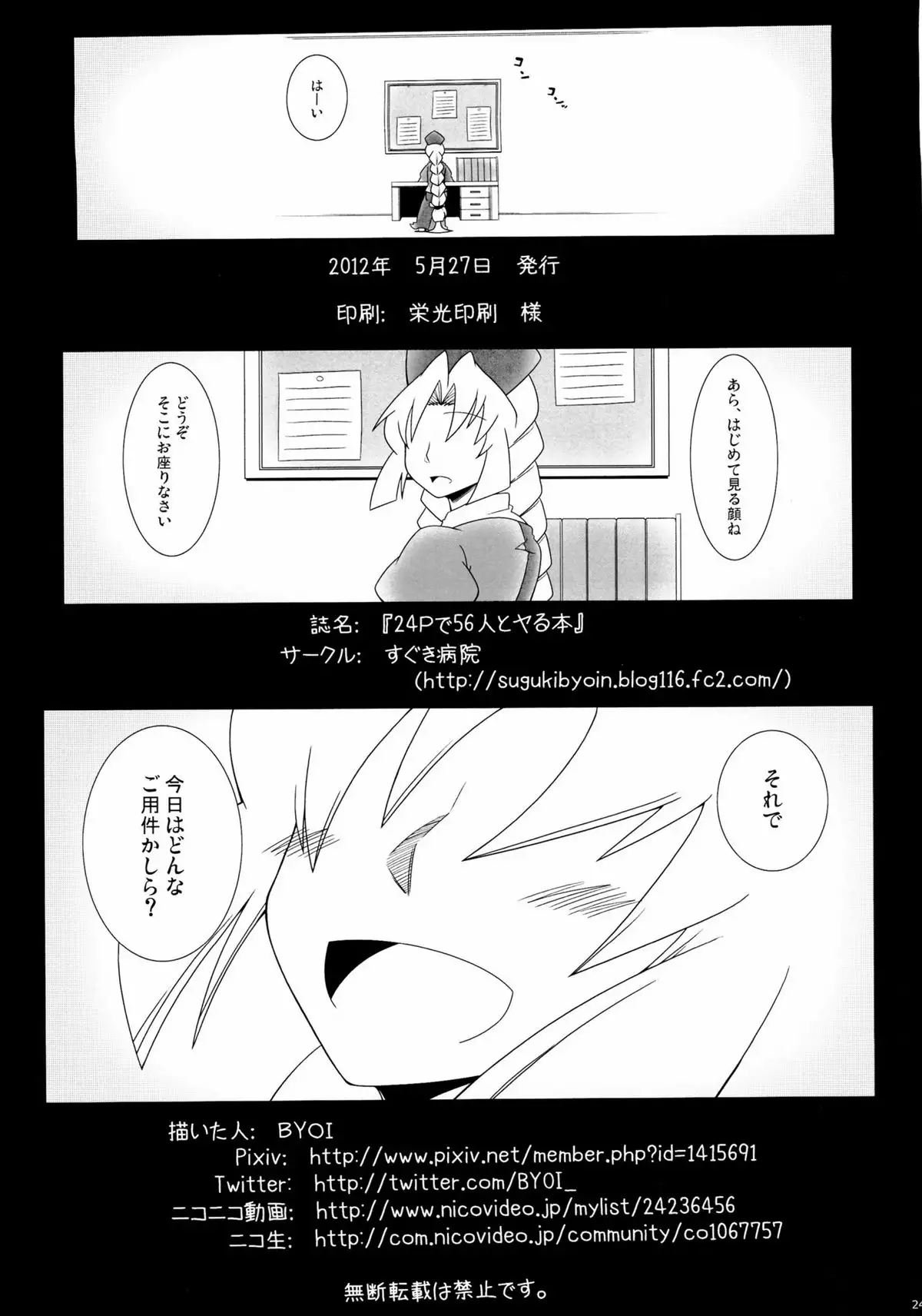 (Reitaisai 9) [Suguki Byoin (BYOI)] 24 P de 56 nin to Yaru Hon (Touhou Project) (例大祭9) [すぐき病院 (BYOI)] 24Pで56人とヤる本 (東方Project)