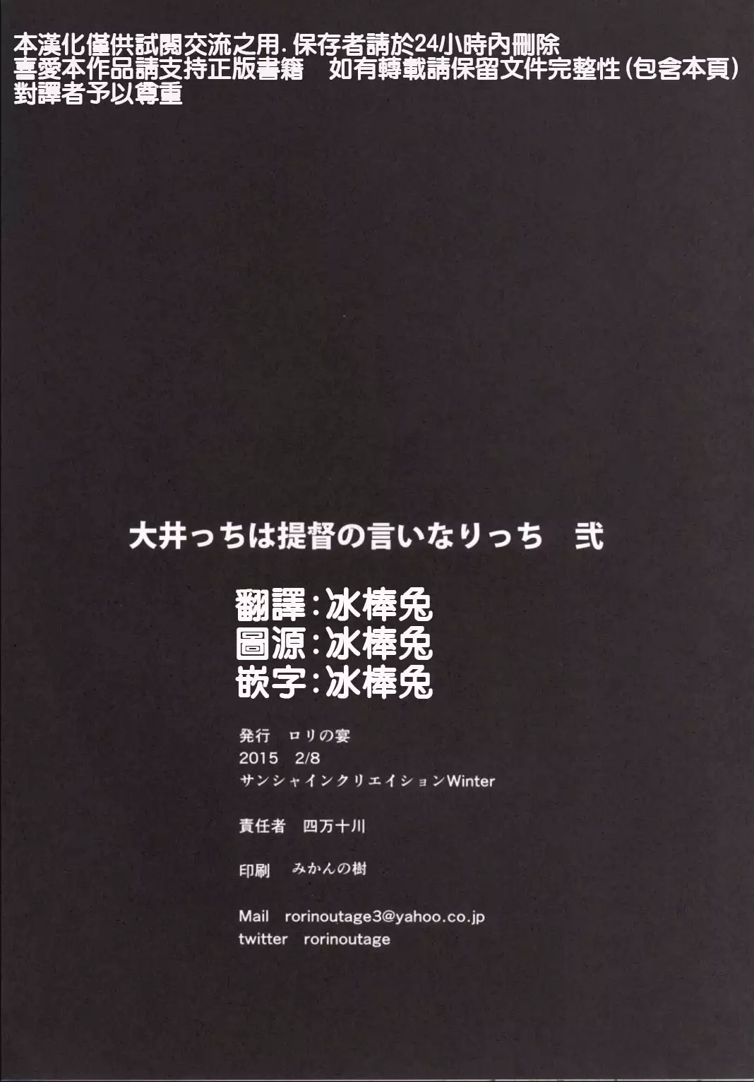 (SC2015 Winter) [Rorinoutage (Shimantogawa)] Ooicchi wa teitoku no iinaricchi ni (Kantai Collection -KanColle-) [Chinese] [冰棒兔個人漢化] (サンクリ2015 Winter) [ロリの宴 (四万十川)] 大井っちは提督の言いなりっち弐 (艦隊これくしょん -艦これ-) [中国翻訳]