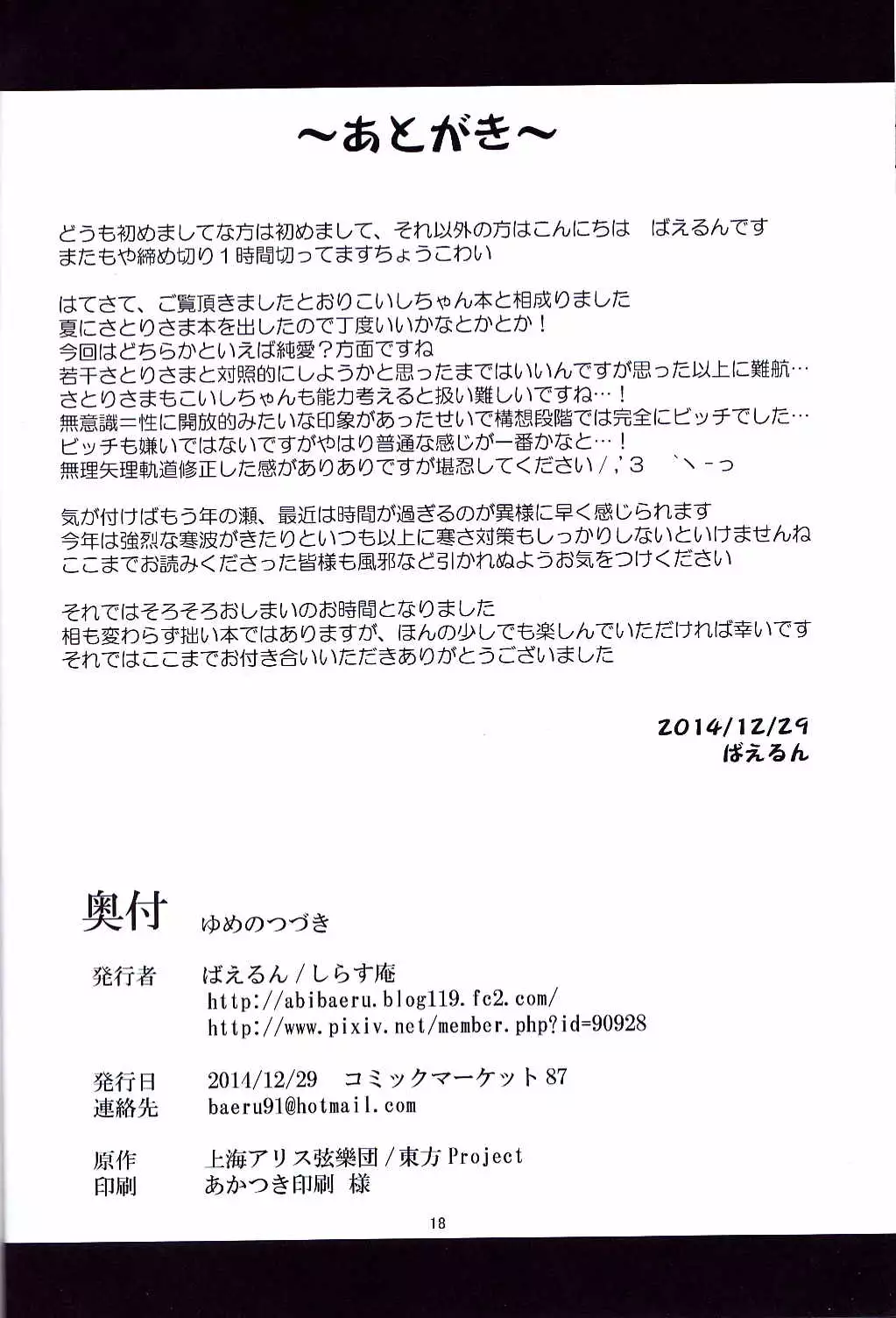 (C87) [Shirasu An (Baerun)] Yume no Tsuzuki (Touhou Project) (C87) [しらす庵 (ばえるん)] ゆめのつづき (東方Project)