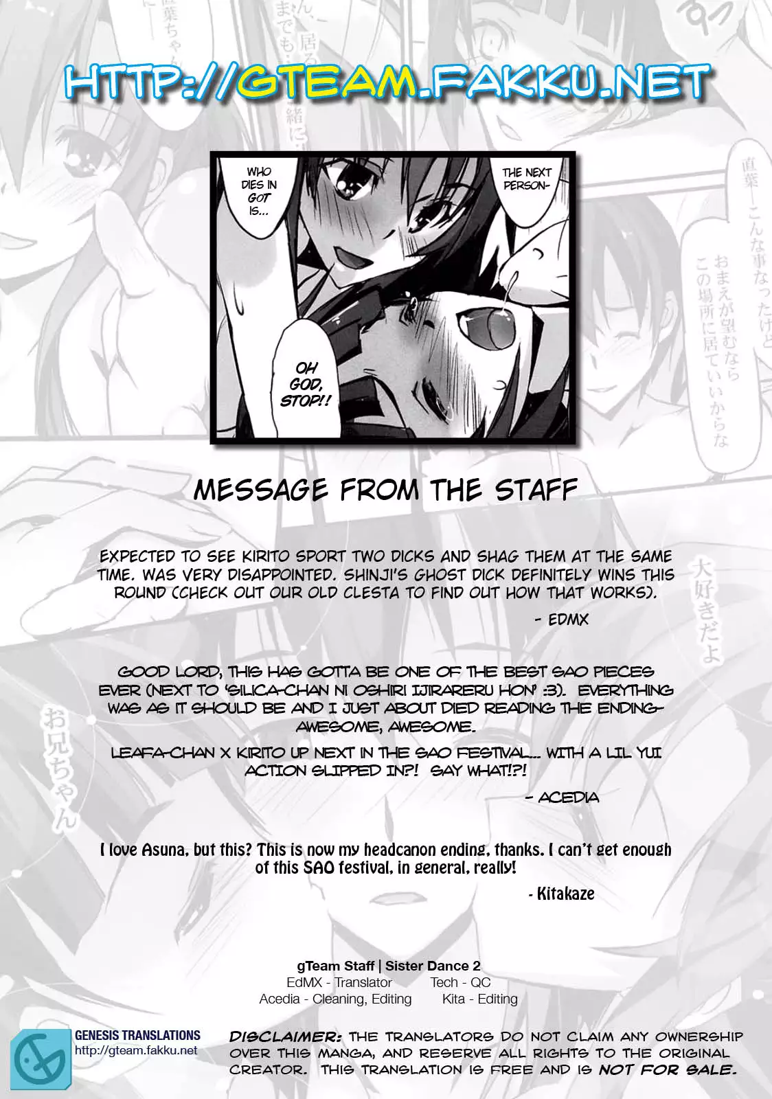 (C83) [Ryu-Seki-Do (Nagare Hyo-go)] Sister Dance 2 Ore no Kanojo to Imouto ga Seiteki Sugiru (Sword Art Online) [English] [gTeam] (C83) [流石堂 (流ひょうご)] シスター・ダンス 2 俺の彼女と妹が性的すぎる (ソードアート・オンライン) [英訳]