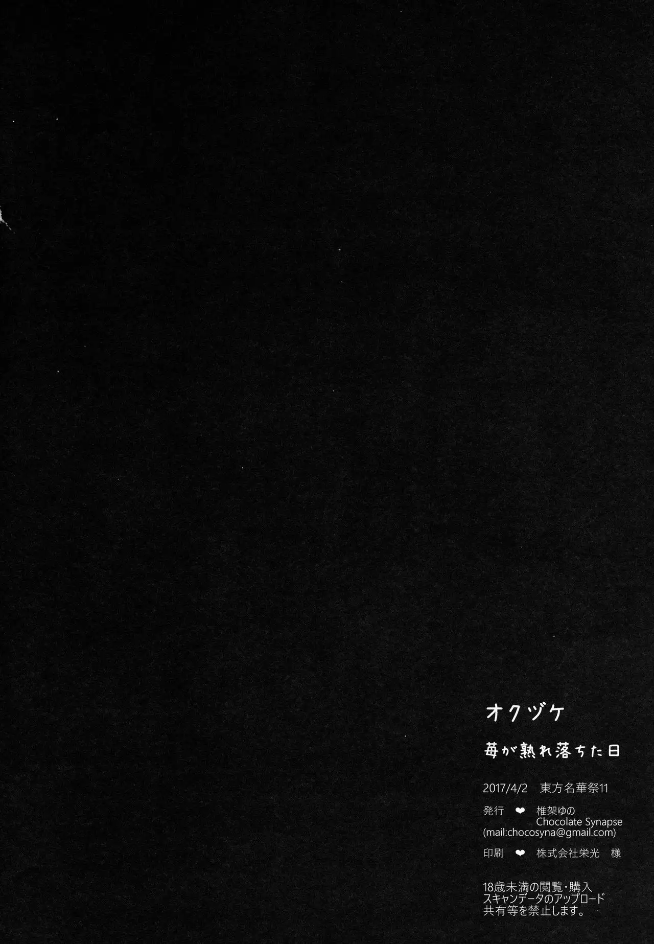 (Meikasai 11) [Chocolate Synapse (Shika Yuno)] Ichigo ga Ureochita Hi (Touhou Project) (名華祭11) [Chocolate Synapse (椎架ゆの)] 苺が熟れ落ちた日 (東方Project)