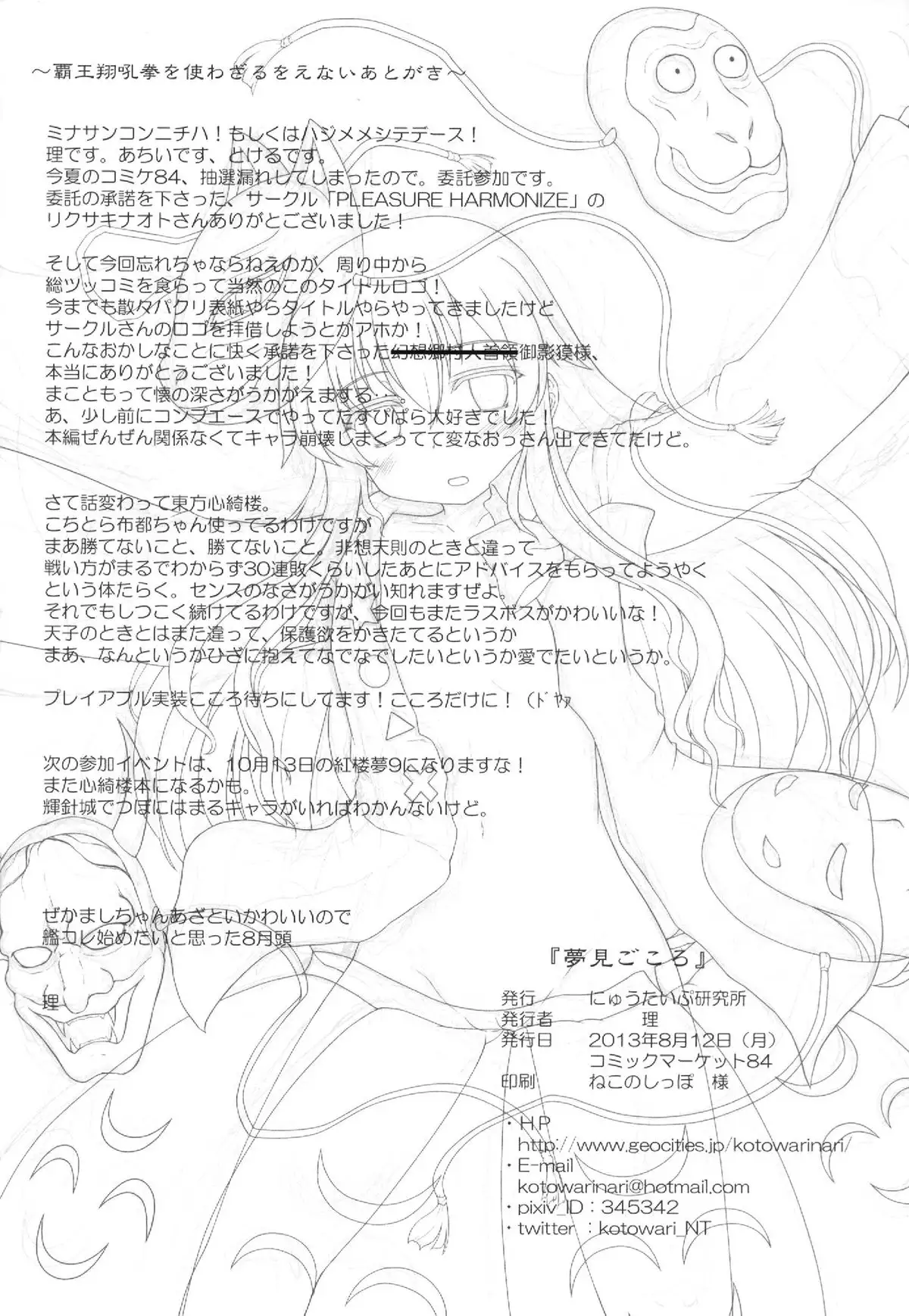 (C84) [Newtype Kenkyuujo (Kotowari)] Yumemi Gokoro (Touhou Project) (C84) [にゅうたいぷ研究所 (理)] 夢見ごころ (東方Project)