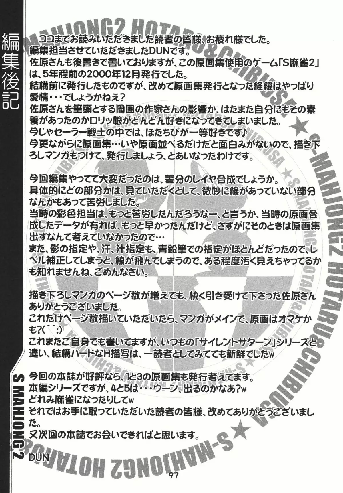 (C69) [RPG COMPANY2 (Sawara Kazumitsu)] Mahjong 2 S (Bishoujo Senshi Sailor Moon) (C69) [RPGカンパニー2 (佐原一光)] S麻雀2原画集 (美少女戦士セーラームーン)