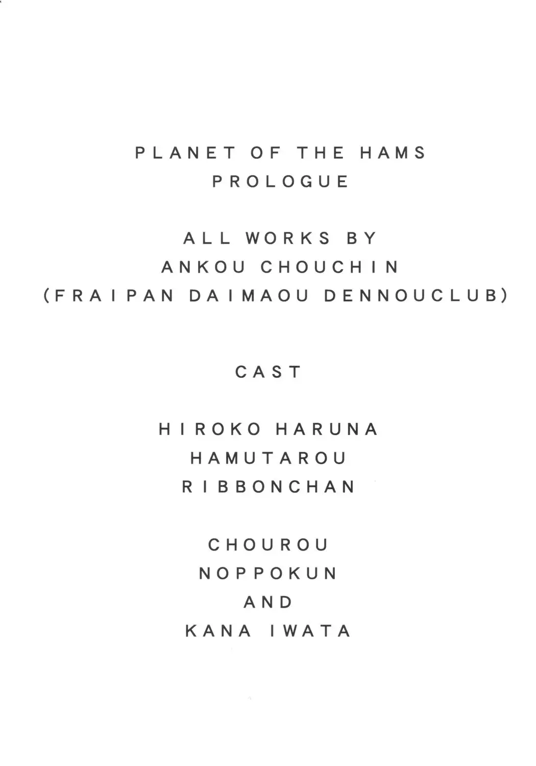 (C65) [Furaipan Daimaou Dennou Club (Chouchin Ankou)] PLANET OF THE HAMS: Prologue (Hamtaro) (C65) [ふらいぱん大魔王電脳倶楽部 (提灯暗光)] PLANET OF THE HAMS: Prologue (とっとこハム太郎)