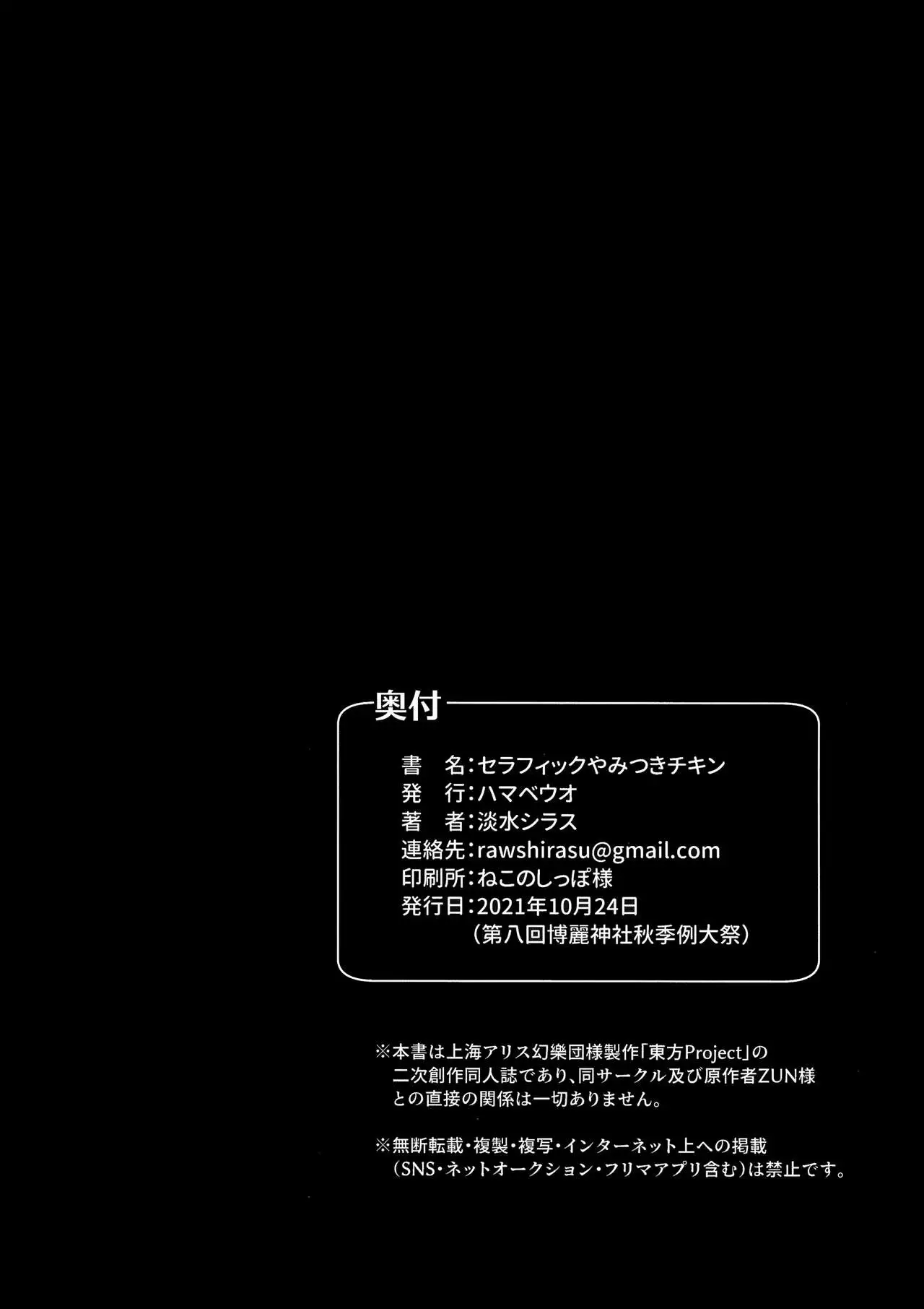 Seraphic Yamitsuki Chicken | Seraphic·性癮·Chicken (秋季例大祭8) [ハマベウオ (淡水シラス)] セラフィックやみつきチキン (東方Project) [中国翻訳]