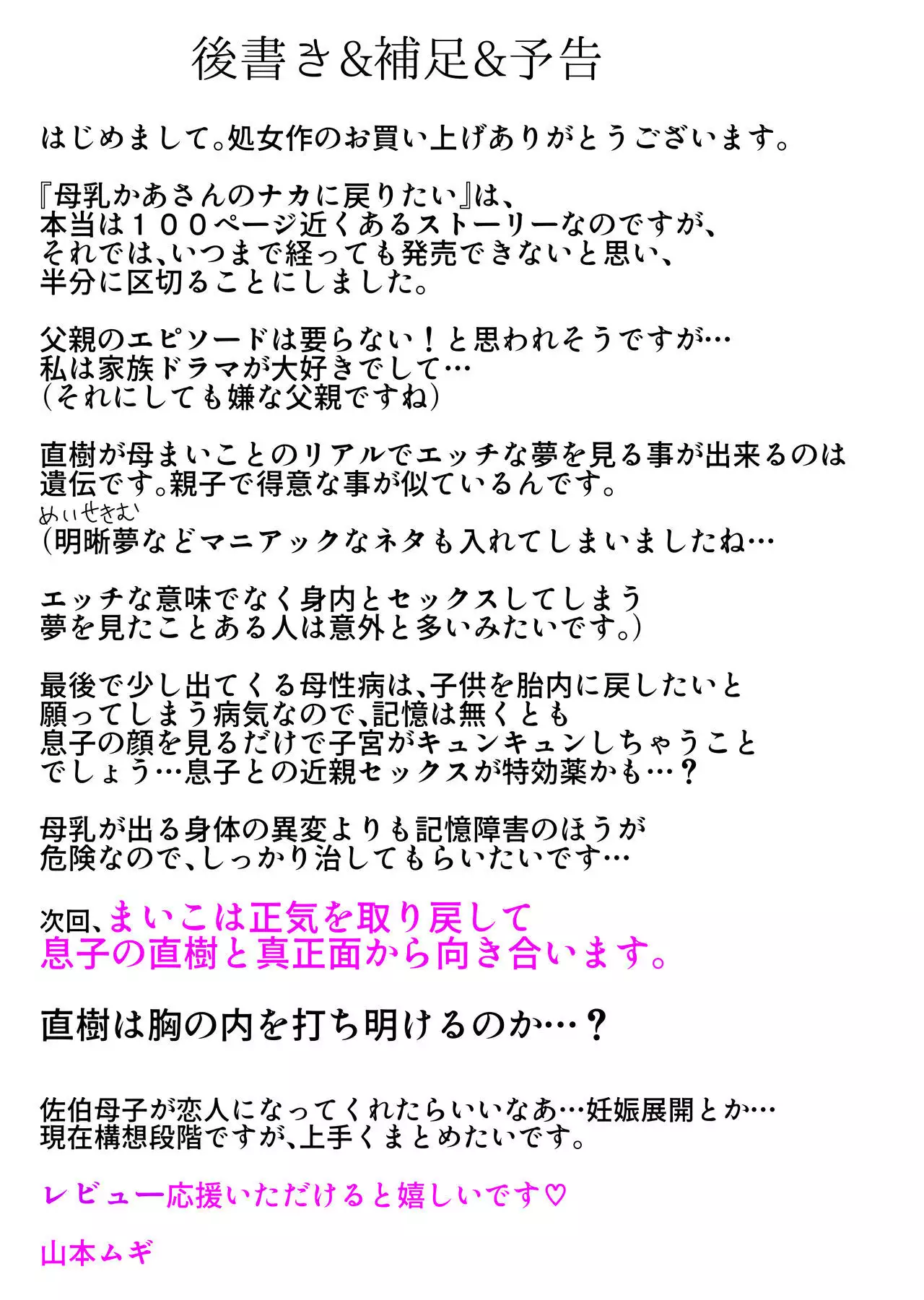 [Yamamoto Mugi] Soshite Kaa-san wa Ore no Ko o Haramu Bonyuu Kaa-san no Naka ni Modoritai Kanketsuhen