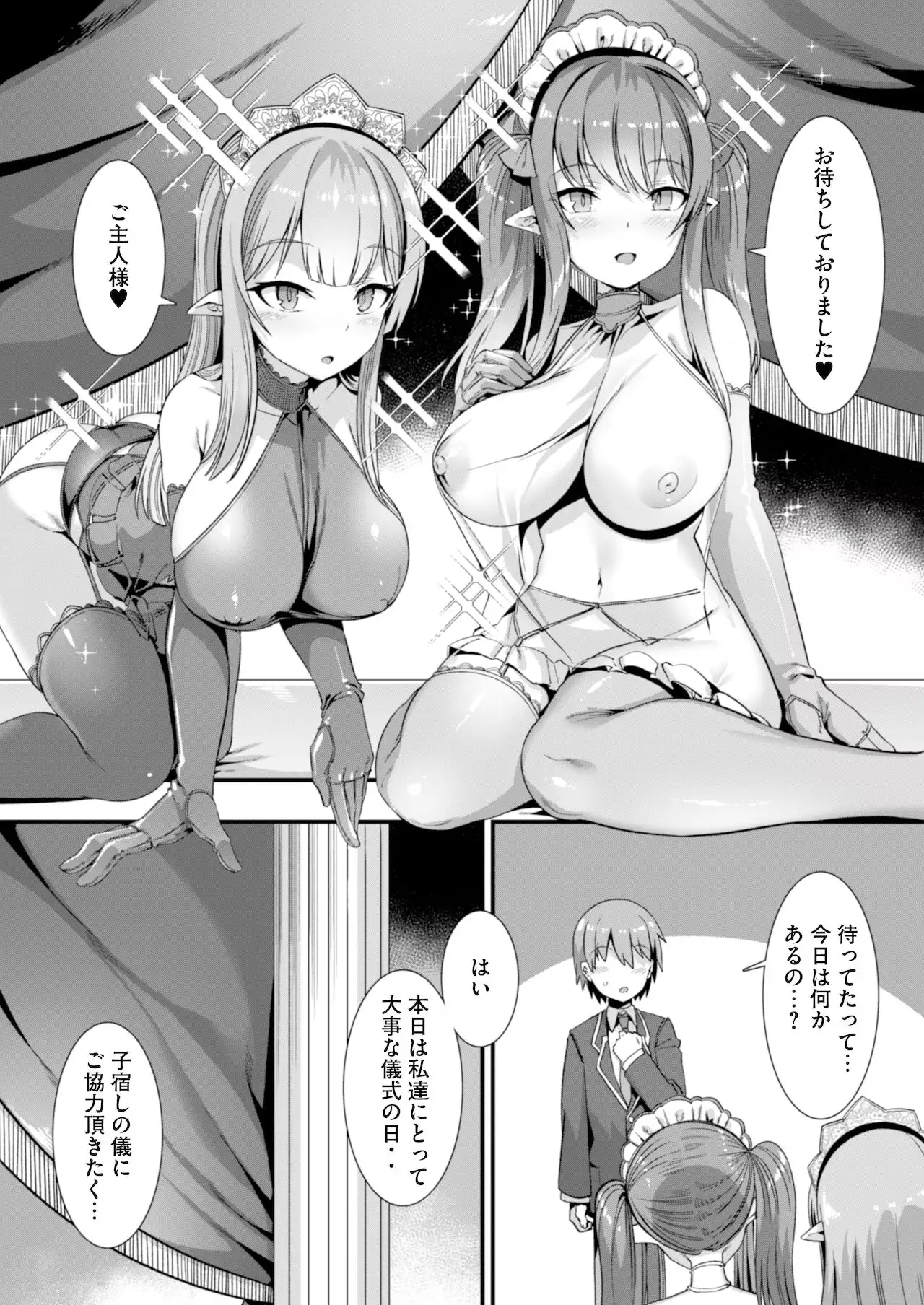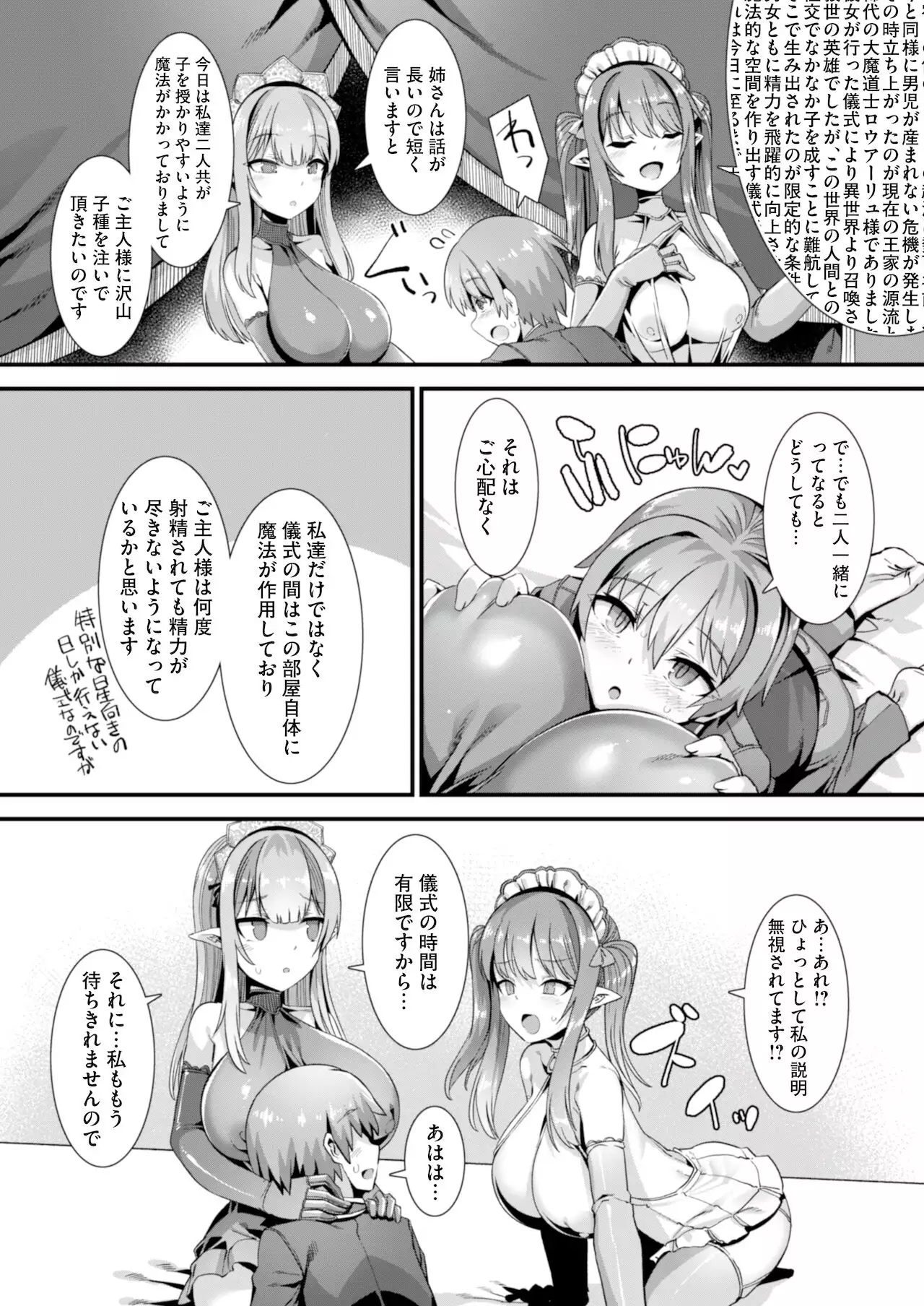 [Rifurebo Comic (Harigane Shinshi)] Isekai Maid Shimai no Amaama Harem Gohoushi ~Otoko ga Umarenai Isekai e Shoukan Sareta Ore ga Heroine o Ategawarete Kozukuri Ecchi~