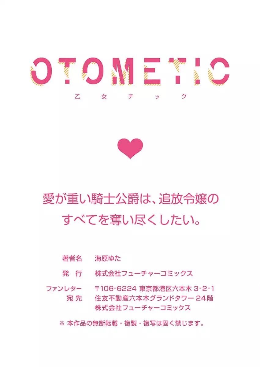 Ai ga Omoi Kishi Koushaku wa, Tsuihou Reijou no Subete o Ubaitsukushitai. | 骑士公爵爱意深重,想要索取放逐千金的一切。 1-18 [海原ゆた] 愛が重い騎士公爵は、追放令嬢のすべてを奪い尽くしたい。 1-18 [中国翻訳]