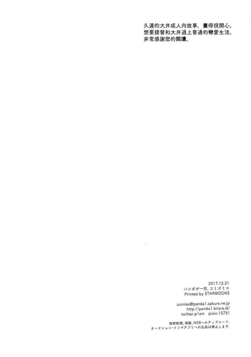 [Pandagaippiki. (Komi Zumiko)] Ooi-san to Odayakana Nichiyoubi - Happy Blessed Sunday | 和大井的悠然星期天 (Watashi no Koi shita Teitoku Ooi Teitoku LOVE Seijin Muke Soushuuhen) (Kantai Collection -KanColle-) [Chinese] [吸住没碎个人汉化] [Digital] [パンダが一匹。 (コミズミコ)] 大井さんとおだやかな日曜日 (私の恋した提督 大井提督LOVE成人向け総集編) (艦隊これくしょん -艦これ-) [中国翻訳] [DL版]