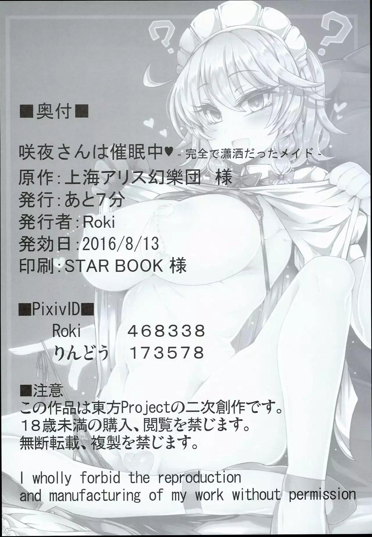(C90) [Ato Nana Fun (Roki, Rindou)] Sakuya-san wa Saiminchuu -Kanzen de Shousha datta Maid- (Touhou Project)