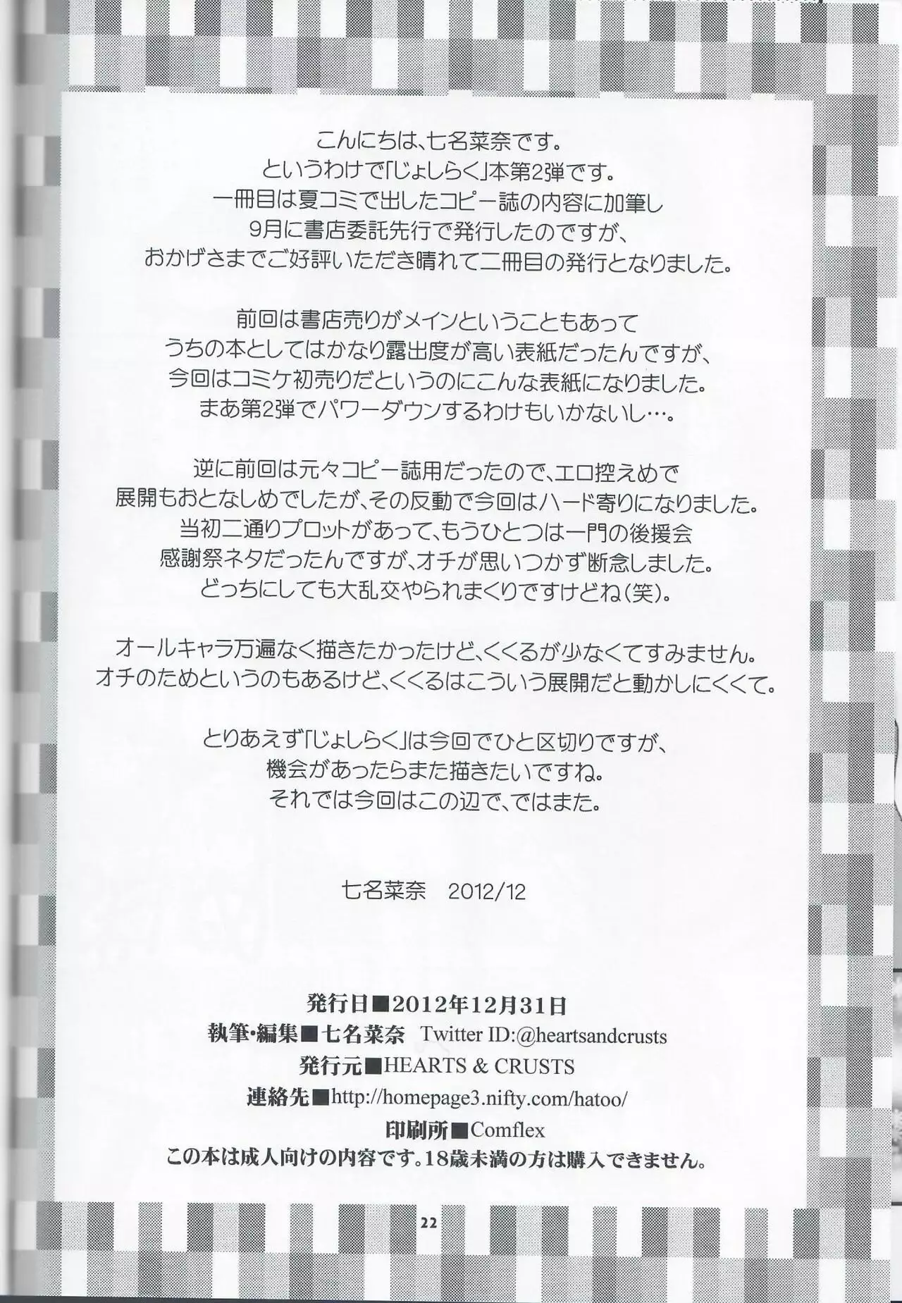 (C83) [HEARTS&CRUSTS (Nanana Nana)] Kou-Raku Ni (Joshiraku)