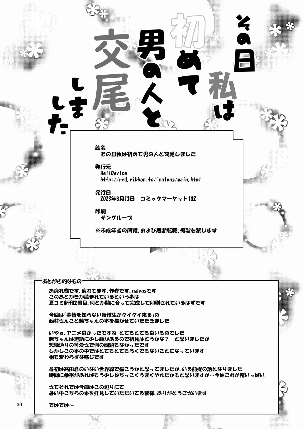Sono Hi Watashi wa Hajimete Otoko no Hito to Koubi Shimashita | That Day, I Had Sex with a Man for the First Time [HellDevice (nalvas)] その日私は初めて男の人と交尾しました (事情を知らない転校生がグイグイくる) [英訳] [DL版]