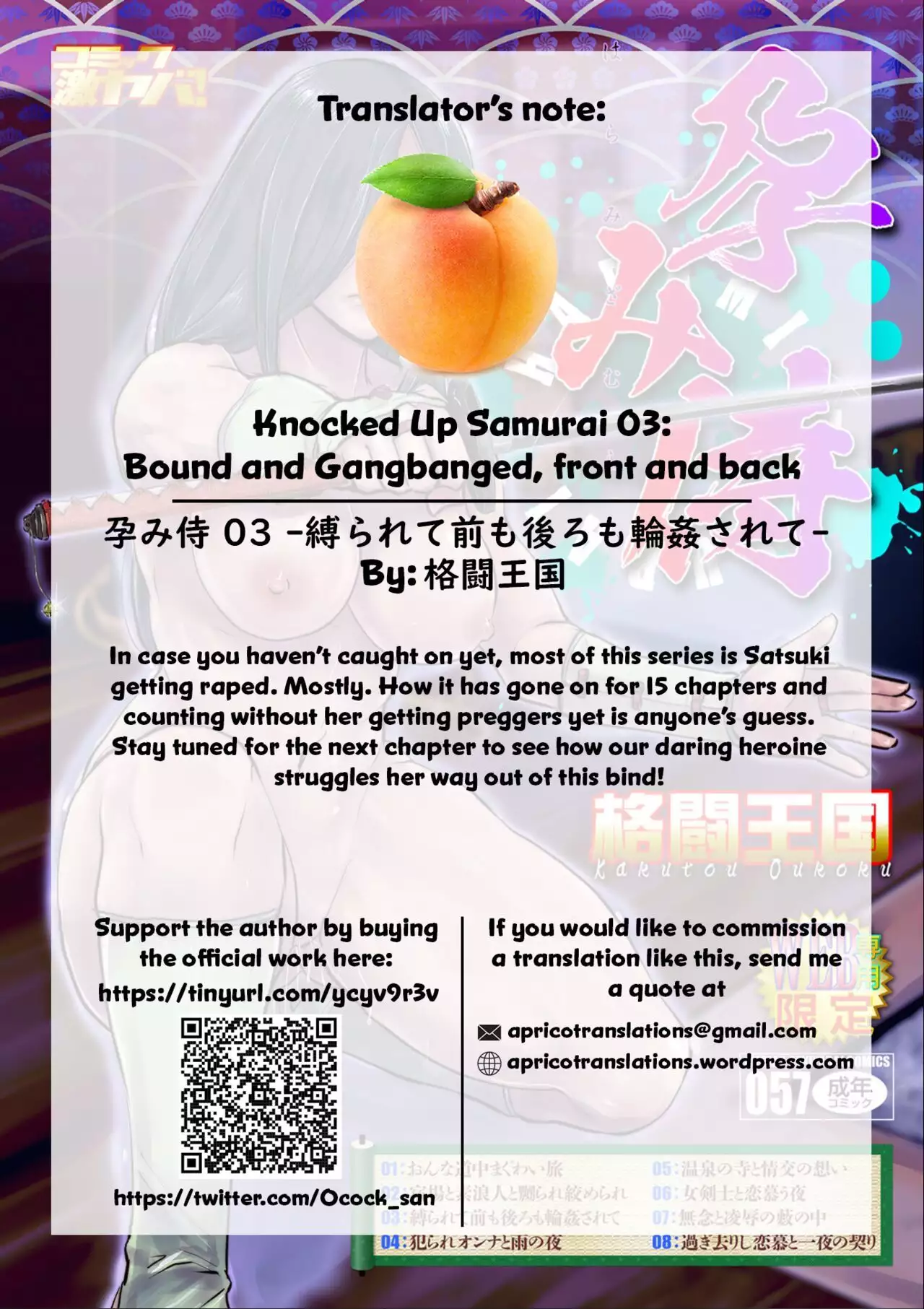 [Kakutou Oukoku] Harami samurai 03 ~Shibararete Mae mo Ushiro mo Rinkan sarete~ | Knocked Up Samurai 03 Bound and Gangbanged, Front and Back (WEB Ban COMIC Gekiyaba! Vol. 108) [English] [Apricot Jam] [格闘王国] 孕み侍 03 ~縛られて前も後ろも輪姦されて~ (WEB版コミック激ヤバ!Vol.108) [英訳]