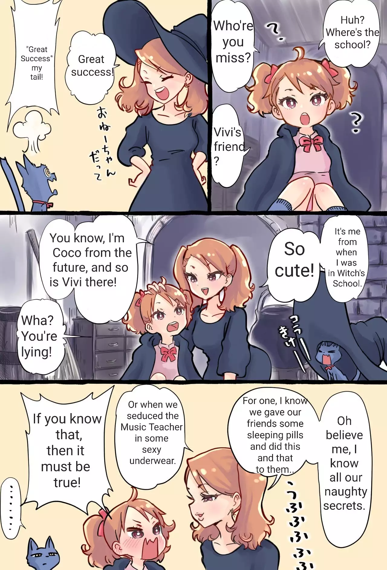 A story about a futanari witch who summons her past self with summoning magic and has sex with her smaller self