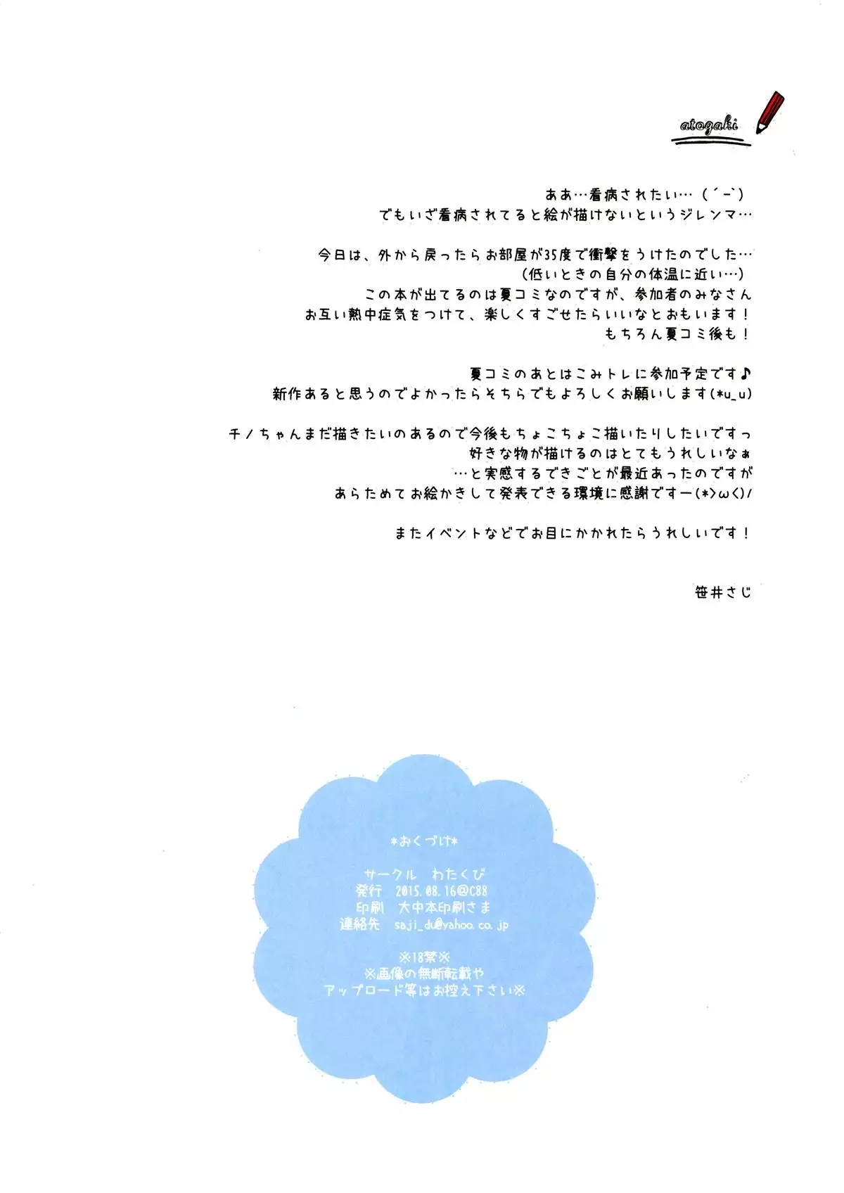 (C88) [Watakubi (Sasai Saji)] Chino-chan to Natsukaze (Gochuumon wa Usagi desu ka?)