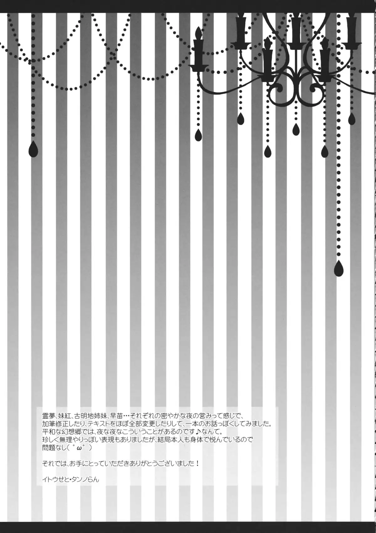 (Reitaisai 11) [Setoran (Itou Seto, Tanno Ran)] CHAN CHAN (Touhou Project) (例大祭11) [せとらん (イトウペコ, タンノポコ)] CHAN CHAN (東方Project)