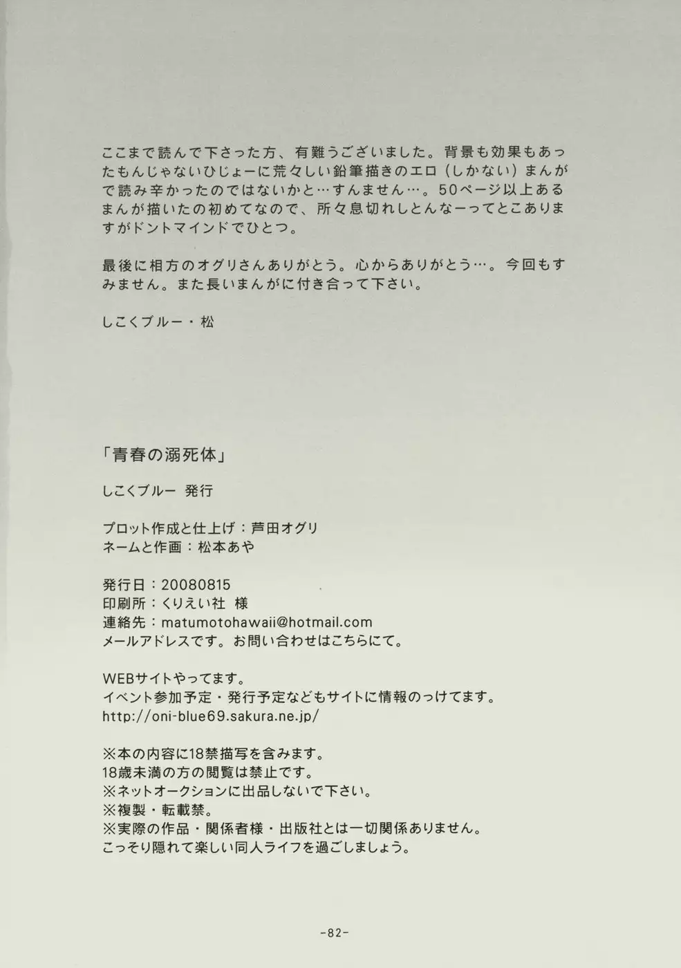 (C74) [SikokuBlue (Matsumoto Aya)] Seishun no Dekishi Karada (Bleach) (C74) [しこくブルー (松本あや)] 青春の溺死体 (ブリーチ)