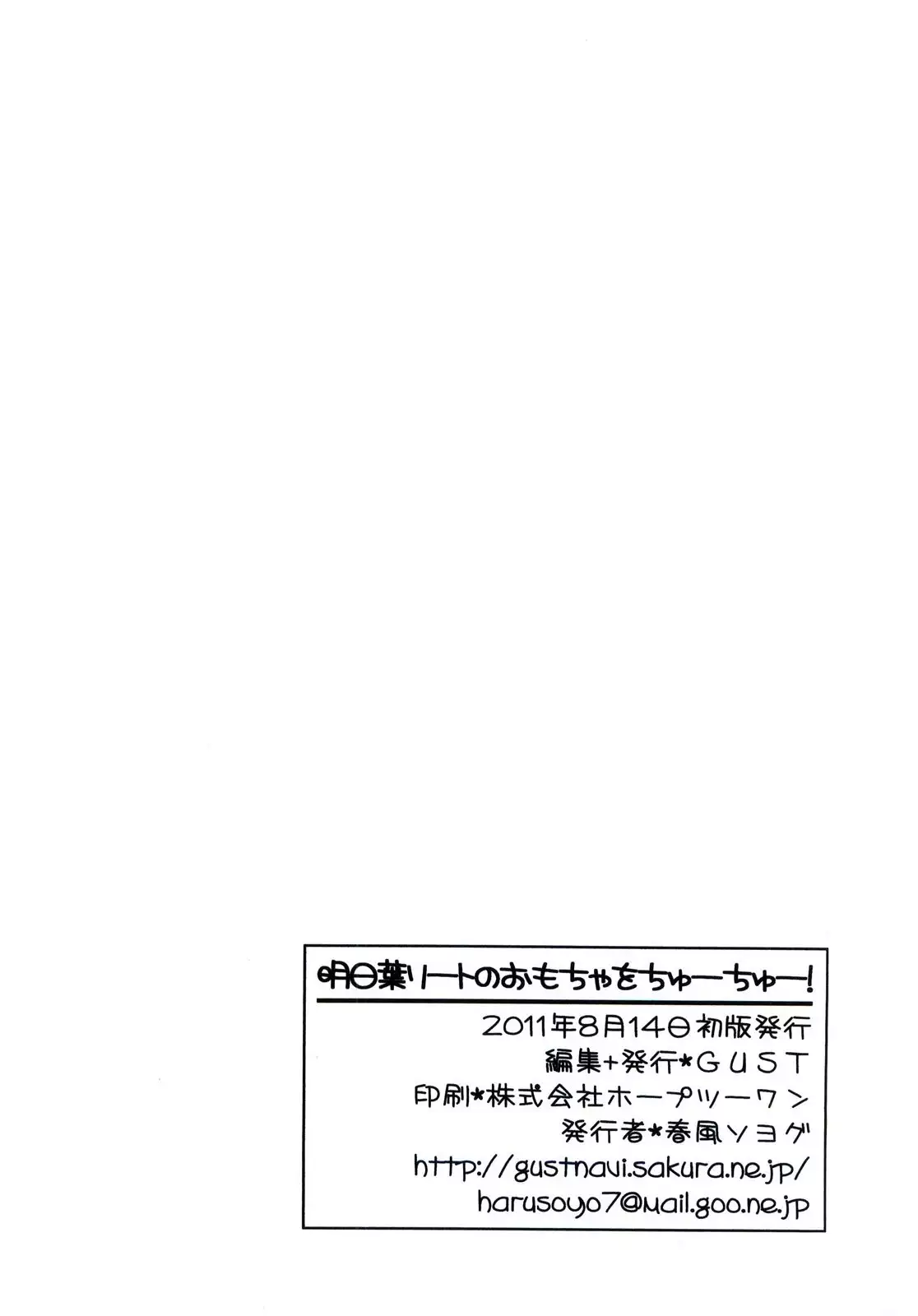 (C80) [GUST (Harukaze Soyogu)] Asuhariet no Omocha o Chuu Chuu! (Lotte no Omocha!) (C80) [GUST (春風ソヨグ)] 明日葉リートのおもちゃをちゅーちゅー! (ロッテのおもちゃ!)