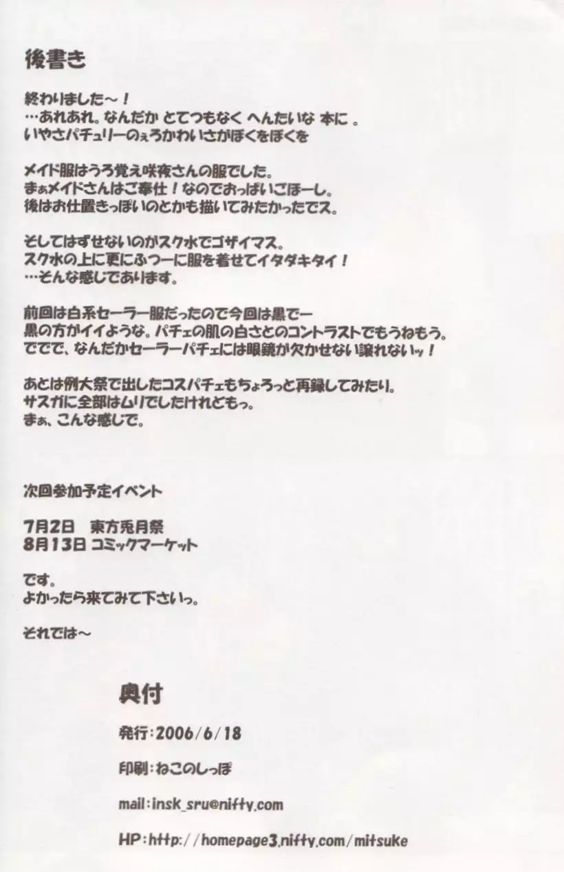 (SC35) [Schwester (Shirau Inasaki) Sukumizu! Pacchu-san (Touhou Project)