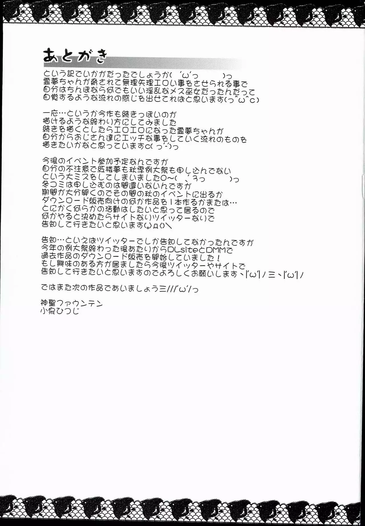 (C90) [Divine Fountain (Koizumi Hitsuji)] Mesu Miko Reimu-chan (Touhou Project) (C90) [神聖ファウンテン (小泉ひつじ)] メス巫女霊夢ちゃん (東方Project)