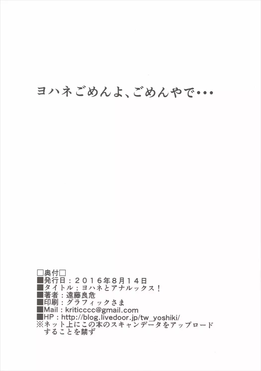 (C90) [EXTENDED PART (Endo Yoshiki)] Yohane to Analx! (Love Live! Sunshine!!) (C90) [拡張パーツ (遠藤良危)] ヨハネとアナルックス! (ラブライブ! サンシャイン!!)