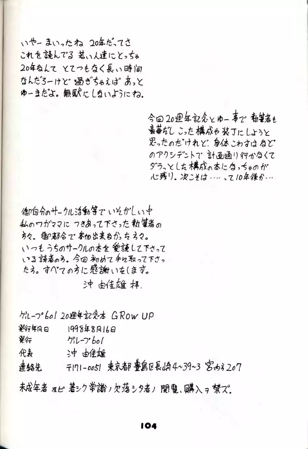 (C54) [Group 601 (Various)] Group 601 20 Shuunen Kinenbon GROW UP (Various) (C54) [グループ601 (よろず)] グループ601 20周年記念本 GROW UP (よろず)