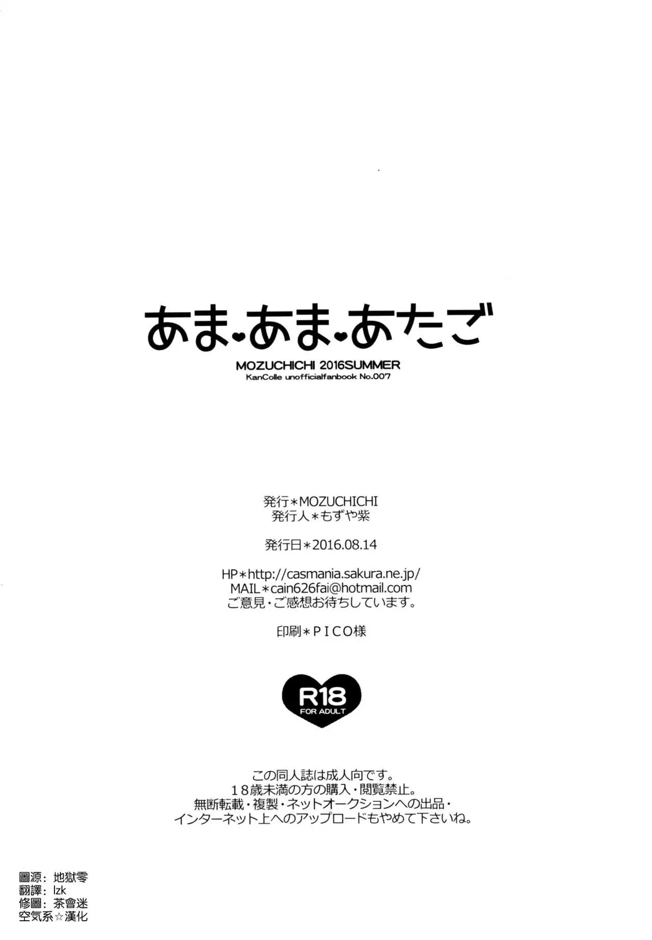 (C90) [MOZUCHICHI (Mozuya Murasaki)] Amaama Atago (Kantai Collection -KanColle-) [Chinese] [空気系☆漢化] (C90) [MOZUCHICHI (もずや紫)] あまあまあたご (艦隊これくしょん -艦これ-) [中国翻訳]