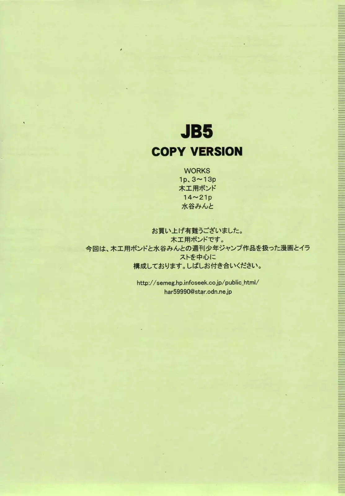 (SC35) [SEMEDAIN G (Mizutani Mint, Mokkouyou Bond)] SEMEDAIN G WORKS vol. 31 - JB5 COPY VERSION (Various) (サンクリ35) [セメダインG (水谷みんと、木工用ボンド)] SEMEDAIN G WORKS vol.31 - JB5 COPY VERSION (よろず)