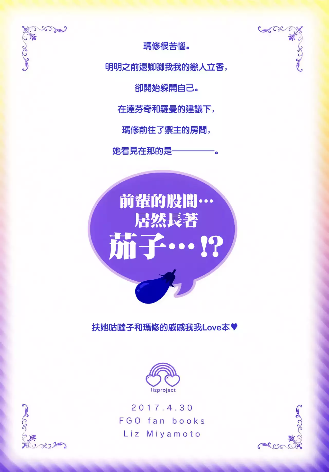 (COMIC1☆11) [liz project (Miyamoto Liz)] Watashi no Kawaii Nasubi-chan (Fate/Grand Order) [Chinese] [沒有漢化] (COMIC1☆11) [liz project (宮本りず)] わたしのかわいいなすびちゃん (Fate/Grand Order) [中国翻訳]