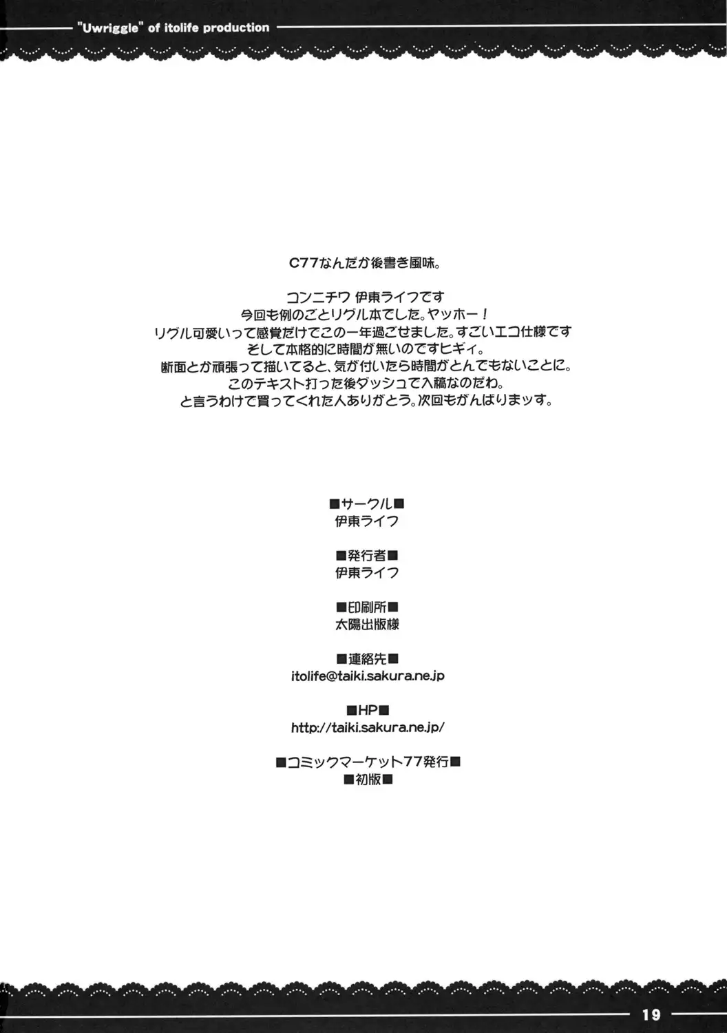(C77) [Itou Life] Uwriggle (Touhou Project) (C77) [伊東ライフ] うりぐる (東方Project)