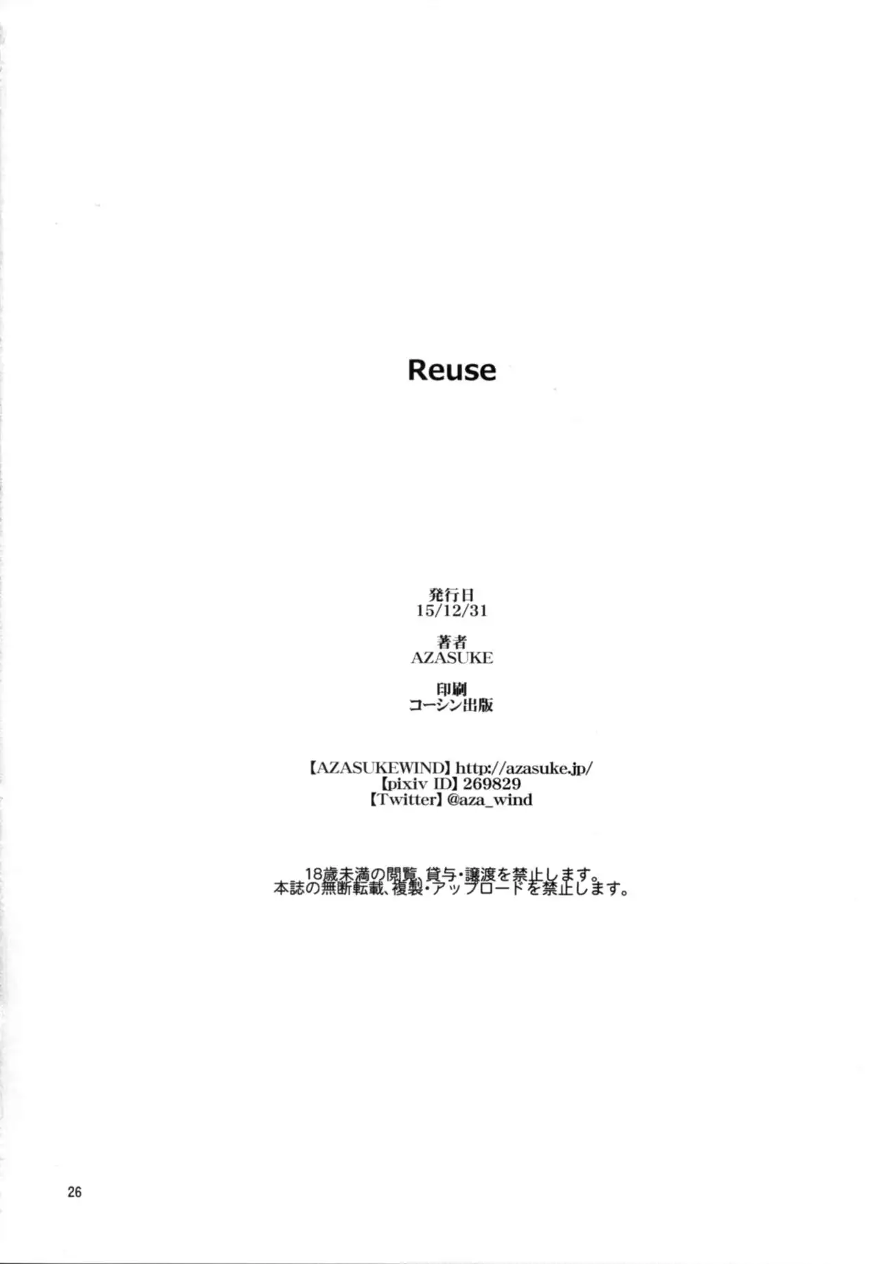 (C89) [Azasuke Wind (AZASUKE)] Reuse (Kantai Collection -KanColle-) (C89) [Azasuke Wind (AZASUKE)] Reuse (艦隊これくしょん -艦これ-)