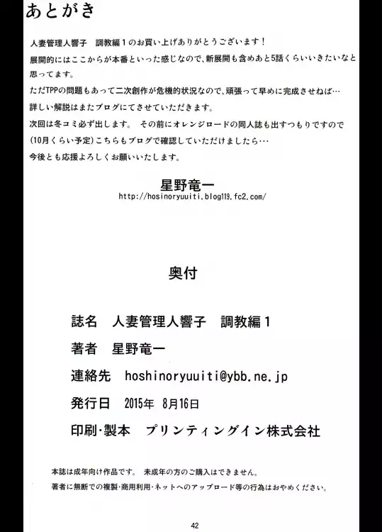 (C91) [Syouryu Yasui-Kai (Hoshino Ryuichi)] Hitozuma Kanrinin Kyouko Choukyou Hen 4 (Maison Ikkoku)