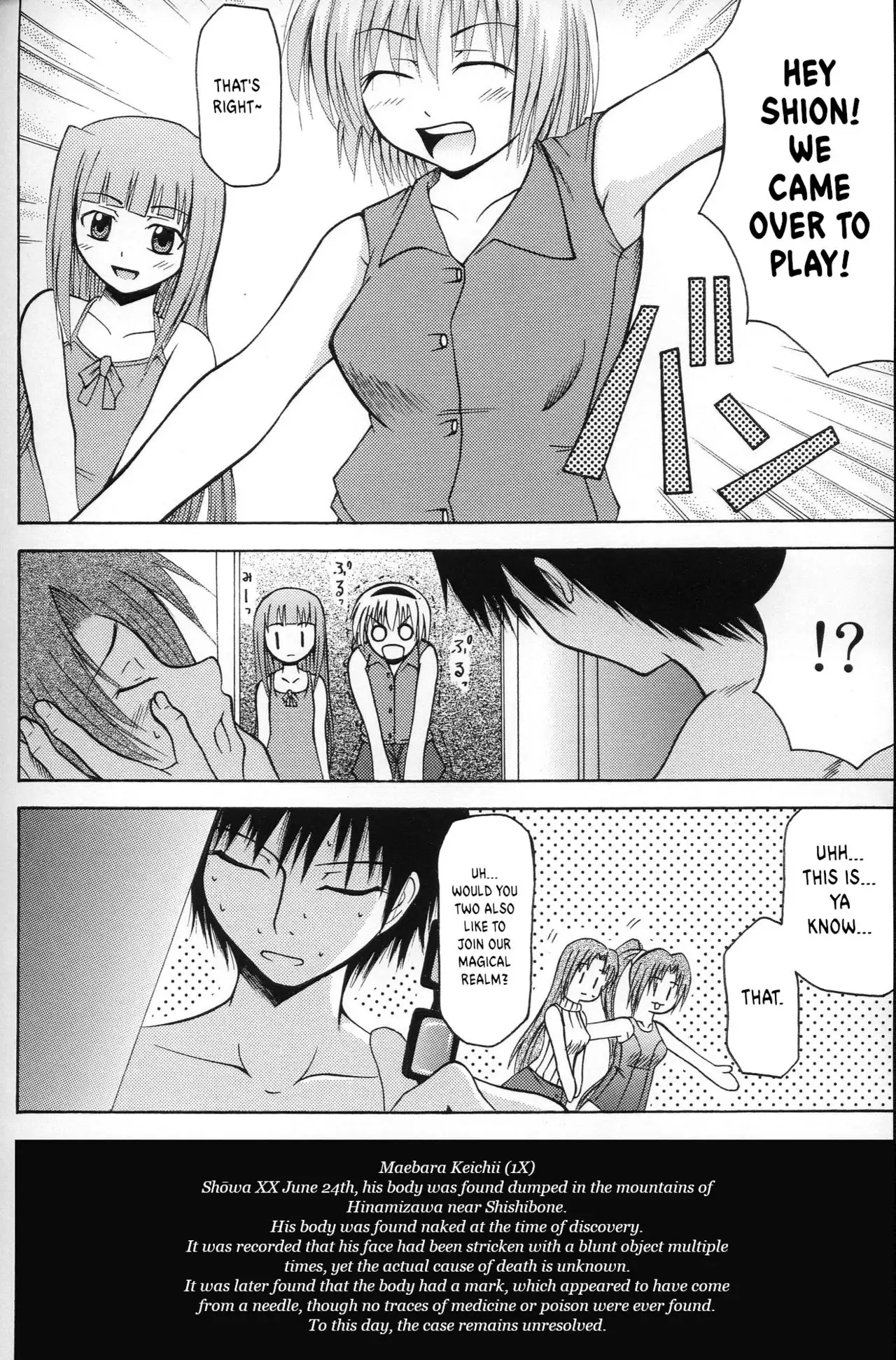 [In-Somnia (Akiba Kaduki, Kudou Hiroshi)] Shukka Genin wa Omae Daze!! - ...you the cause of breaking out... (Higurashi no Naku Koro ni) [English] [EHCOVE]