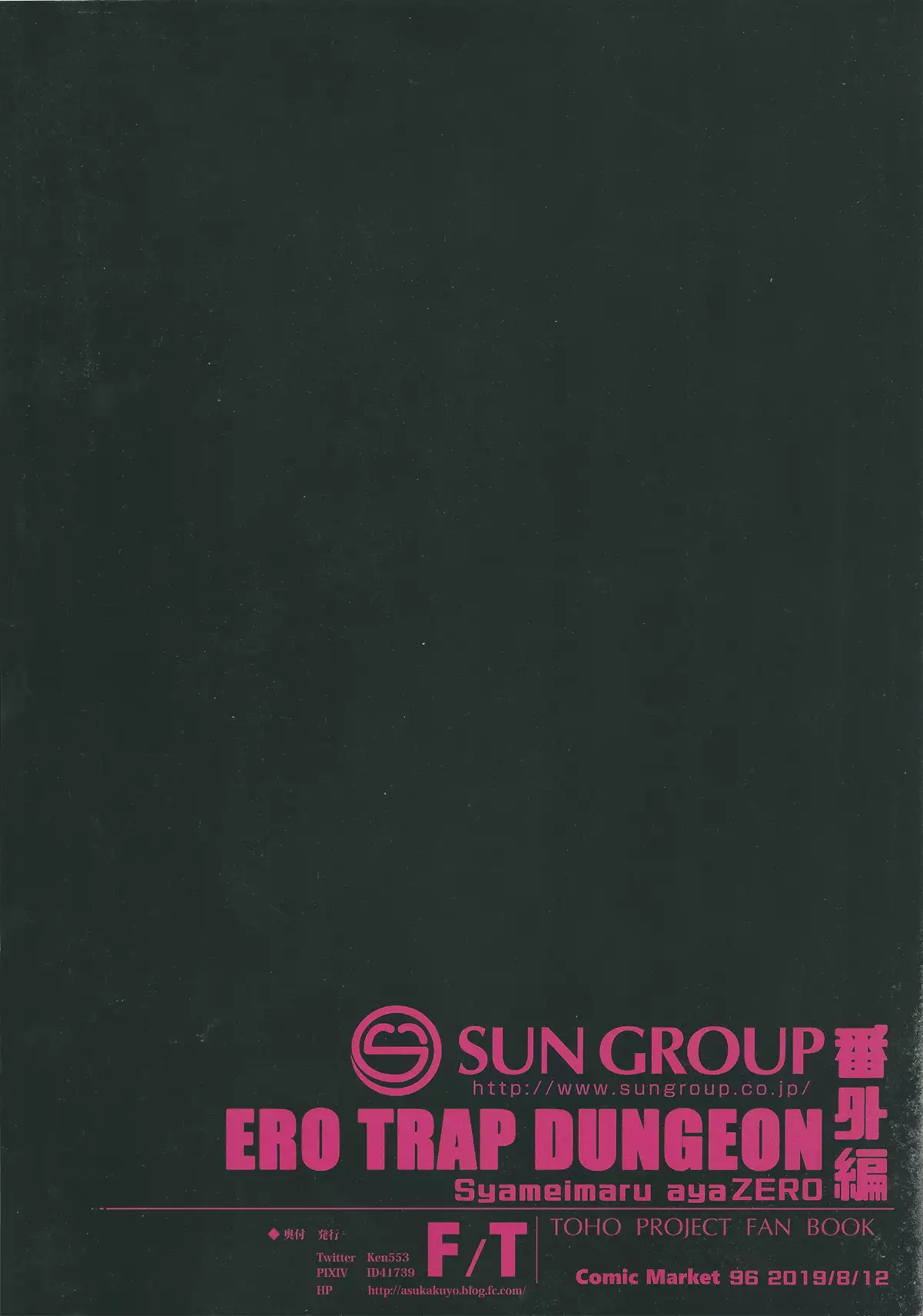 Datengu Shameimaru Aya Ero Trap Dungeon Zero Bangaihen (C96) [F/T (ken)] 堕天狗 射命丸文エロトラップダンジョン零番外編 (東方Project)