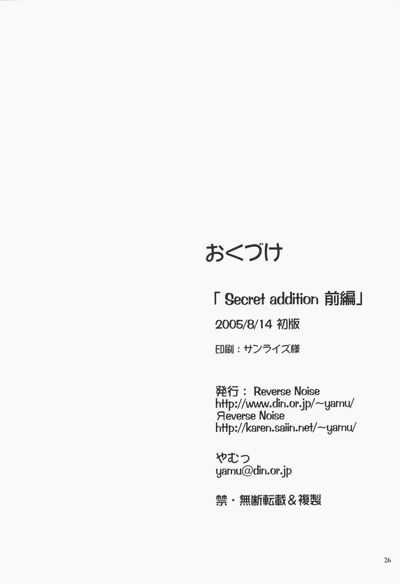 (C68) [Reverse Noise (Yamu)] Secret addition Zenpen (Touhou Project) (C68) [Reverse Noise (やむっ)] Secret addition 前編 (東方Project)