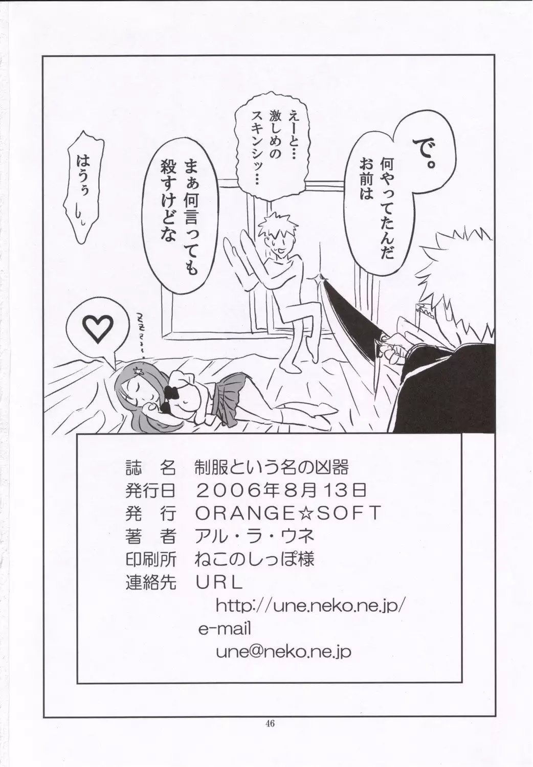 (C70) [ORANGE☆SOFT (Aru Ra Une)] Seifuku To Iu Na no Kyouki (Bleach) (C70) [ORANGE☆SOFT (アル・ラ・ウネ)] 制服という名の凶器 (ブリーチ)
