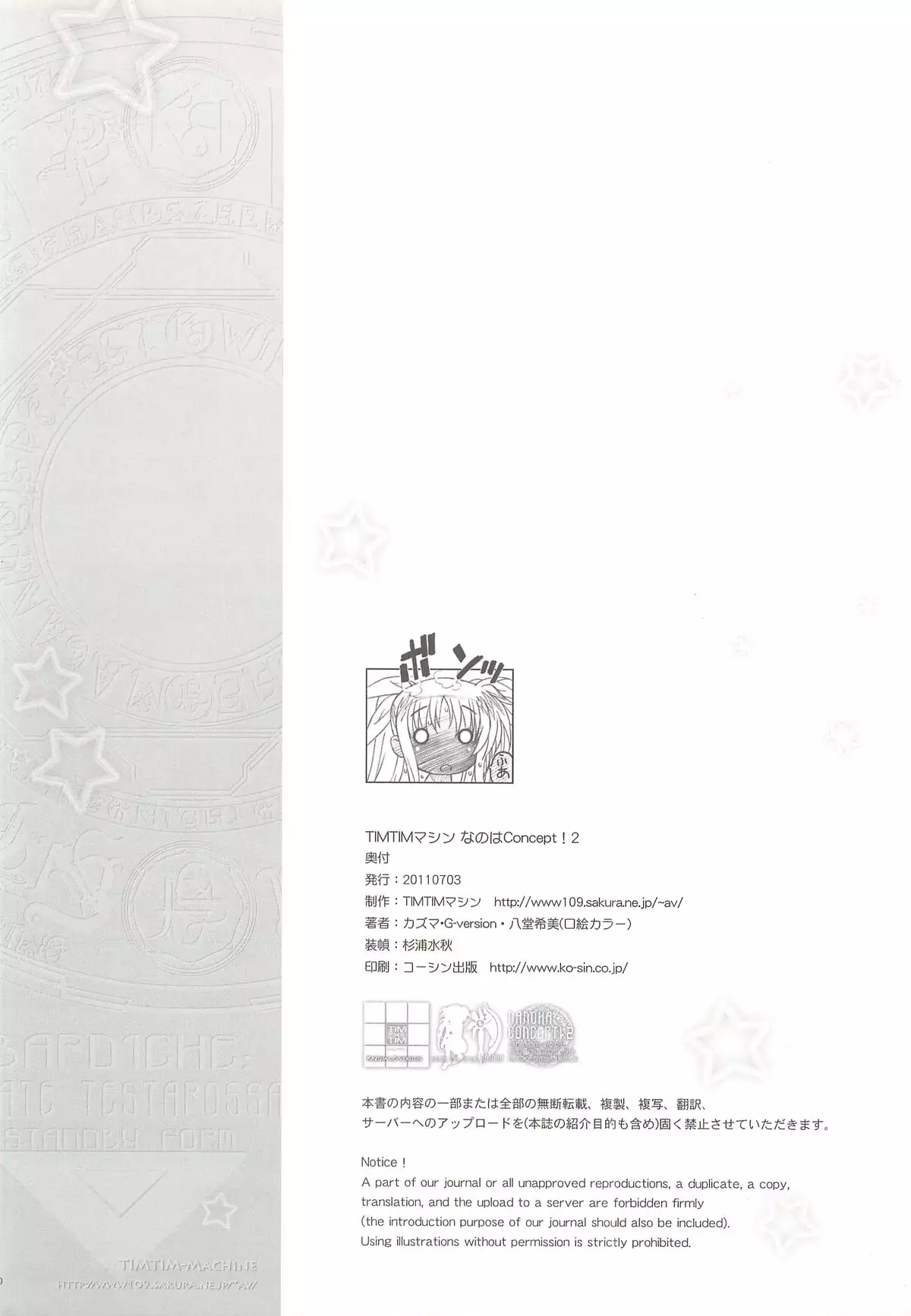 [TIMTIM MACHINE (Kazuma G-version)] TIMTIM MACHINE Nanoha Concept! 2 (Mahou Shoujo Lyrical Nanoha) [TIMTIMマシン (カズマ・G-version)] TIMTIMマシン なのはConcept!2 (魔法少女リリカルなのは)