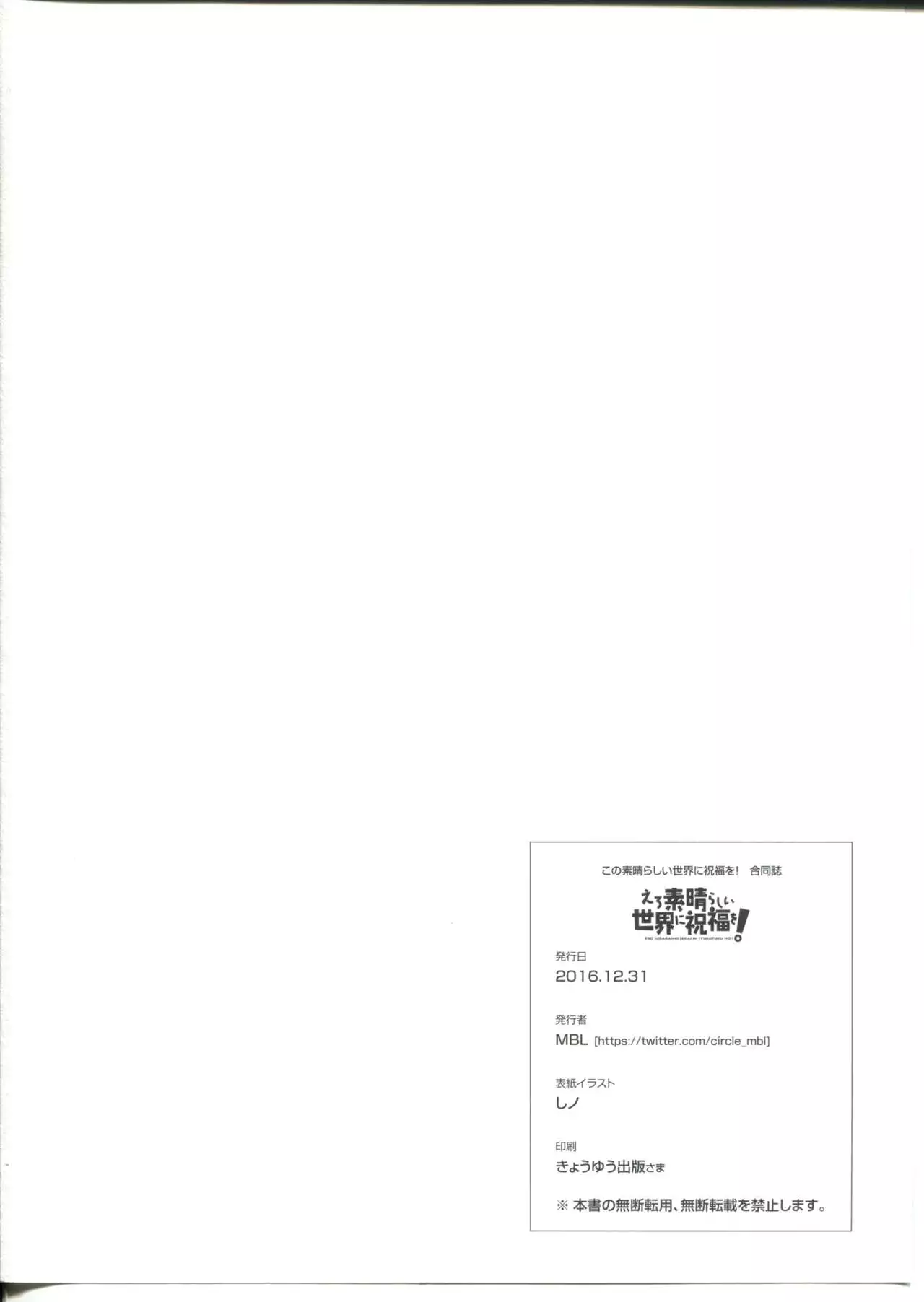 (C91) [MBL (Various)] Ero Subarashii Sekai ni Syukufuku o! (Kono Subarashii Sekai ni Syukufuku o!) (C91) [MBL (よろず)] えろ素晴らしい世界に祝福を! (この素晴らしい世界に祝福を!)