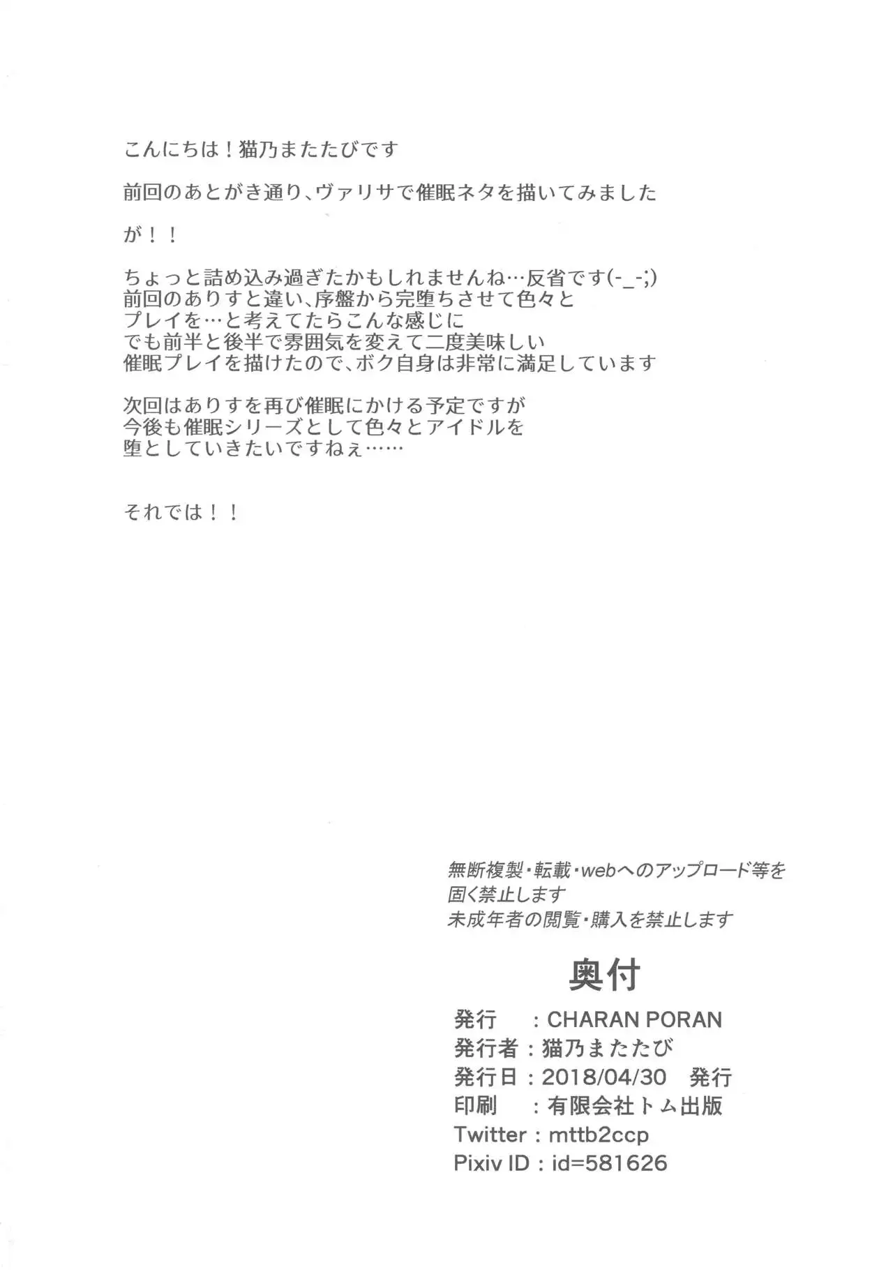 (COMIC1☆13) [CHARAN PORAN (Nekono Matatabi)] Matoba Risa Saimin Waisetsu Image Video (THE IDOLM@STER CINDERELLA GIRLS) (COMIC1☆13) [CHARAN PORAN (猫乃またたび)] 的場梨沙 催眠猥褻IV (アイドルマスターシンデレラガールズ)
