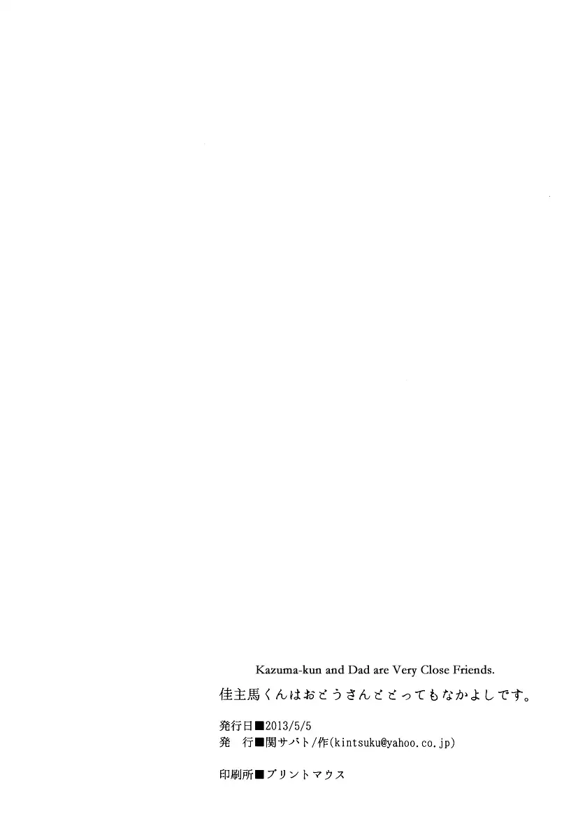 Kazuma-kun wa Otousan to Tottemo Nakayoshi desu. (しょたふる!) [関サバト (作)] 佳主馬くんはおとうさんととってもなかよしです。(サマーウォーズ) [英訳]