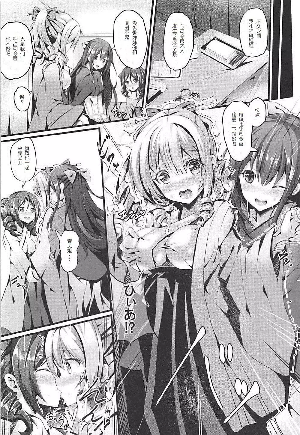 (C93) [PUMPERNICKEL (Sumisuzu)] Kami-neesan Haru-neesan no Jouji o Mokugeki Shita Hata-fuu-chan no Unmei ♪ (Kantai Collection -KanColle-) [Chinese] [爽粉死妈个人汉化] (C93) [PUMPERNICKEL (すみすず)] 神姉さん春姉さんの情事を目撃した旗風ちゃんの運命♪ (艦隊これくしょん -艦これ-) [中国翻訳]