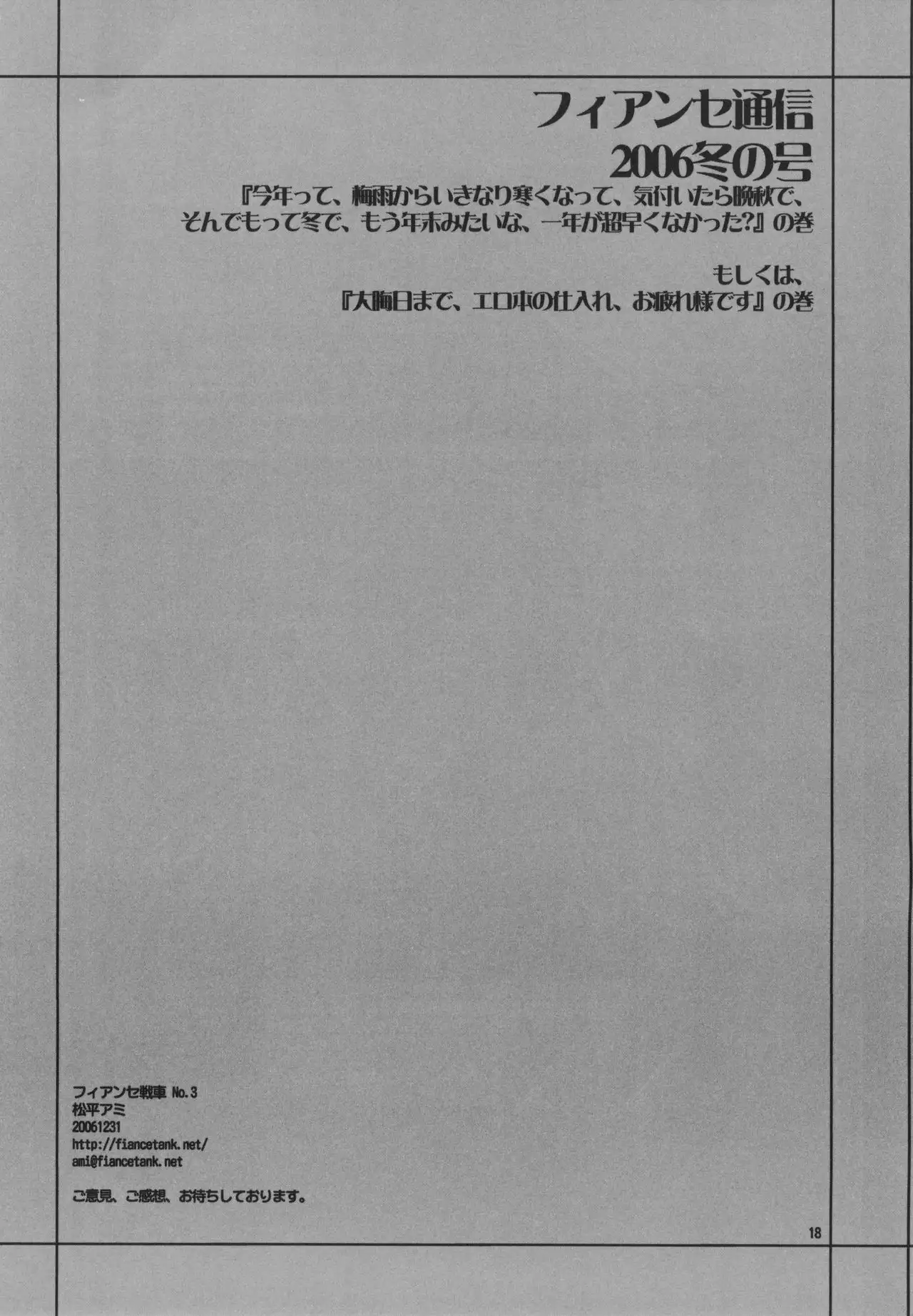 Fiance Tsuushin 2006 - Fuyu no Gou (C71) [フィアンセ戦車 (松平アミ)] フィアンセ通信 2006・冬の号 (ブリーチ、コードギアス)