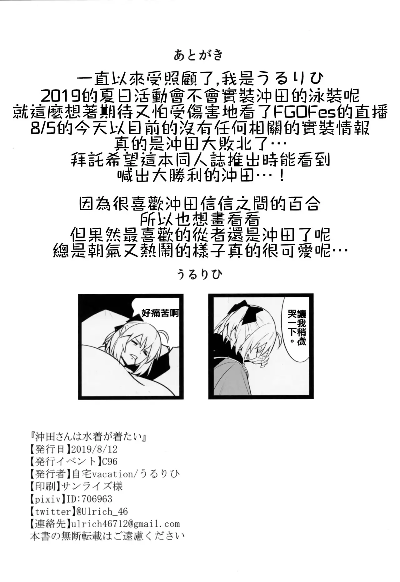 Okita-san wa Mizugi ga Kitai | 沖田小姐想要穿泳裝 (C96) [自宅vacation (うるりひ)] 沖田さんは水着が着たい (Fate/Grand Order) [中国翻訳]