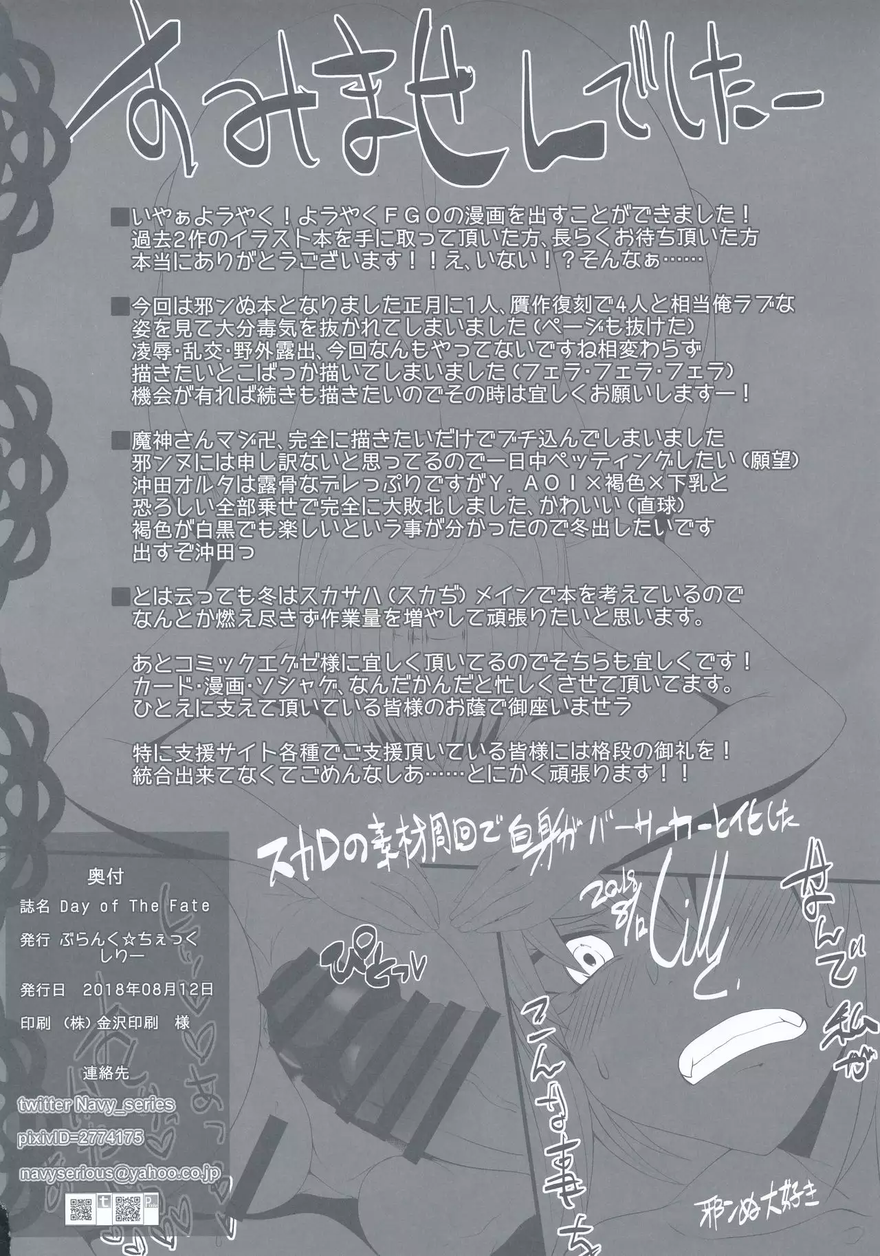(C94) [Blank☆Check (Silly)] Day of The Fate (Fate/Grand Order) (C94) [ぶらんく☆ちぇっく (しりー)] Day of The Fate (Fate/Grand Order)