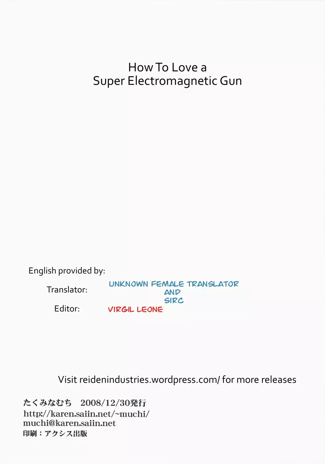 (C75) [Takumi na Muchi] Choudenji Hou no Aishi Kata | How to Love a Super Electromagnetic Gun (Toaru Kagaku no Railgun) [English] (C75) [たくみなむち] 超電磁砲のあいしかた (とある科学の超電磁砲) [英訳]