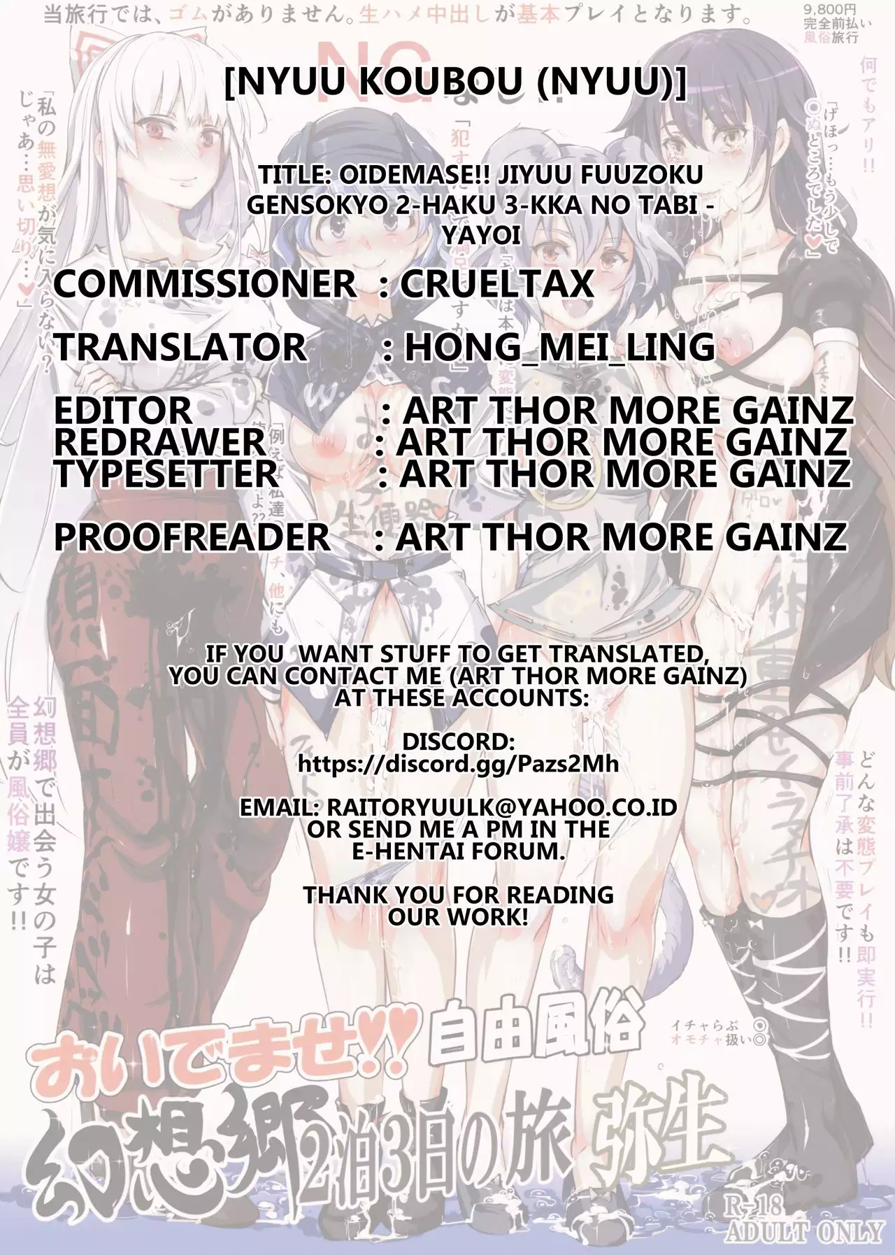 (C86) [Nyuu Koubou (Nyuu)] Oidemase!! Jiyuu Fuuzoku Gensoukyou 2-haku 3-kka no Tabi - Yayoi (Touhou Project) [English] [Hong_Mei_Ling] (C86) [にゅう工房 (にゅう)] おいでませ!!自由風俗幻想郷2泊3日の旅 弥生 (東方Project) [英訳]