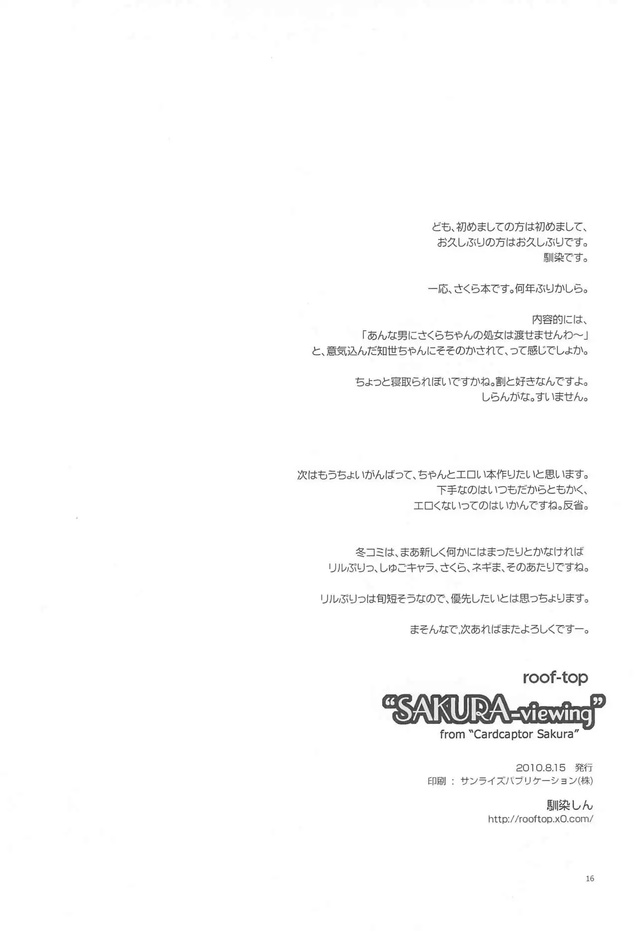 SAKURA viewing (C78) [roof-top (馴染しん)] SAKURA viewing (カードキャプターさくら)