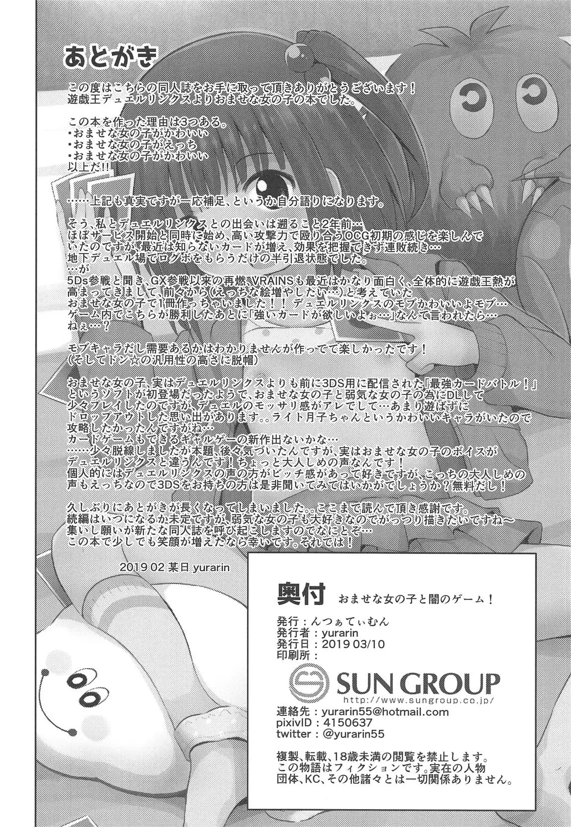 (SC2019 Spring) [Nna Timun (yurarin)] Omase na Onnanoko to Yami no Game (Yu-Gi-Oh!) (サンクリ2019 Spring) [んつぁてぃむん (yurarin)] おませな女の子と闇のゲーム (遊☆戯☆王)